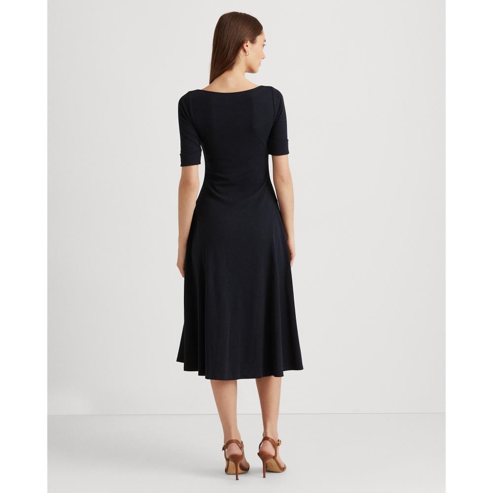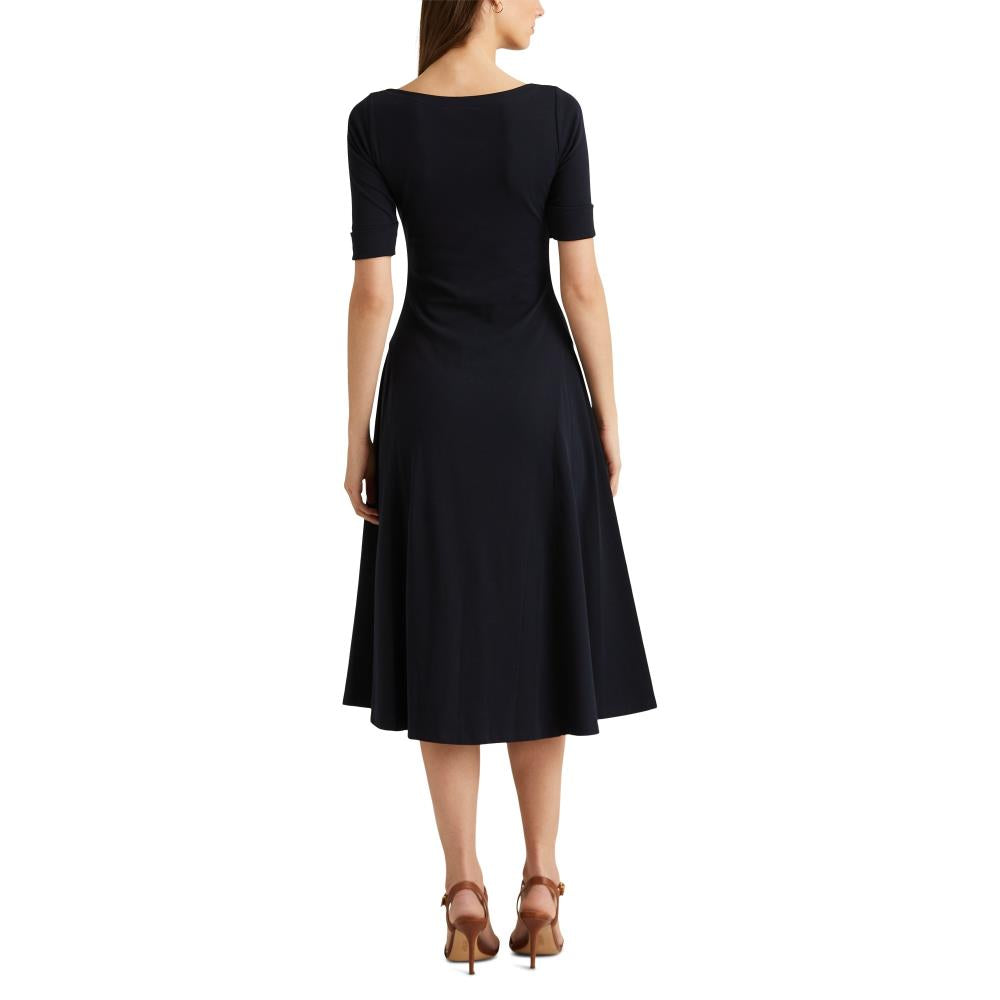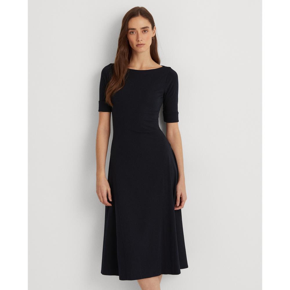 Questo abito di lunghezza media in elegante tonalità blu rappresenta l'equilibrio perfetto tra raffinatezza e comfort quotidiano. Realizzato con pregiato cotone arricchito da un tocco di elastan, offre una silhouette impeccabile che si adatta con grazia al corpo. La sua versatilità lo rende un elemento distintivo per il guardaroba contemporaneo, facilmente mantenibile grazie alla praticità del lavaggio in lavatrice.