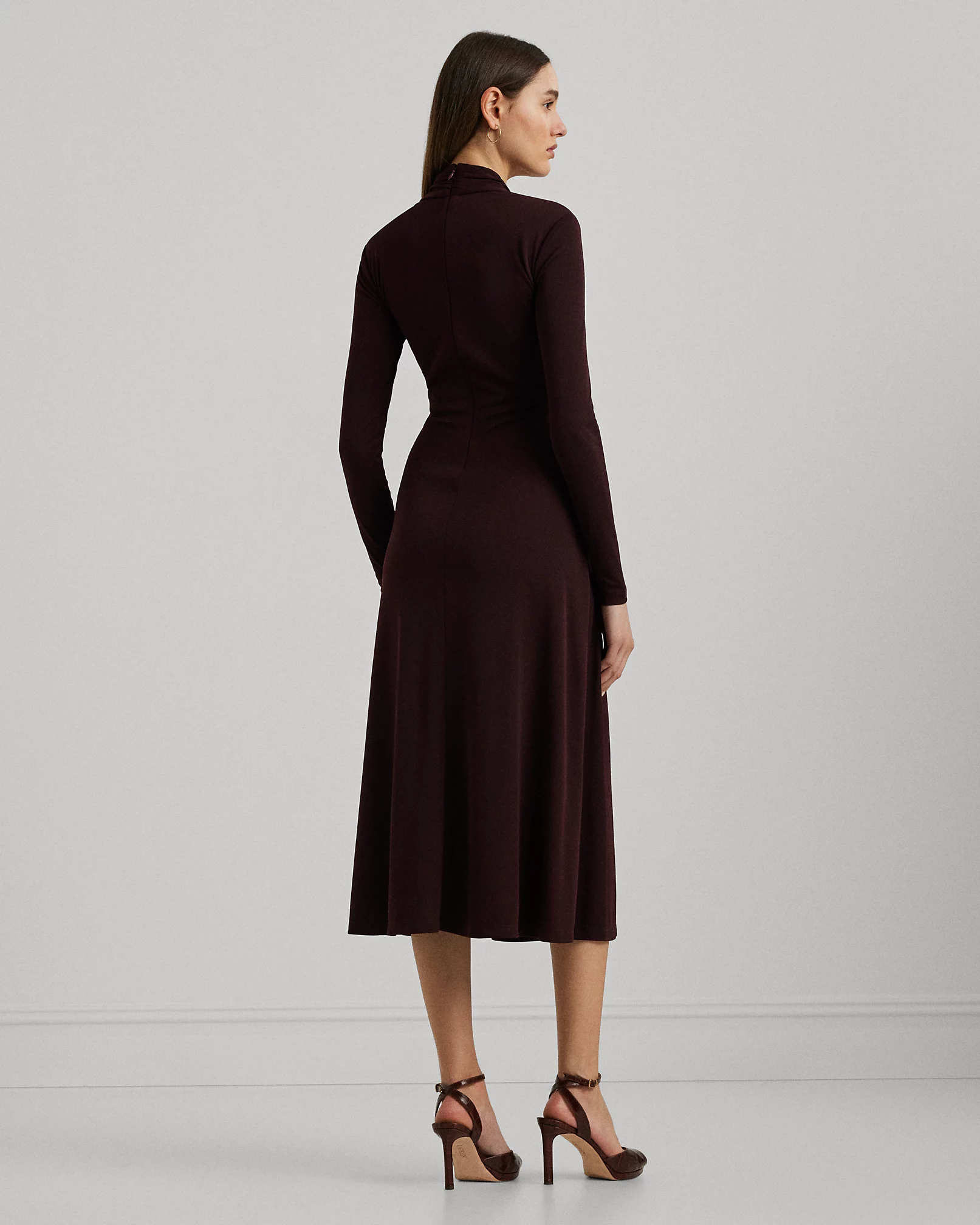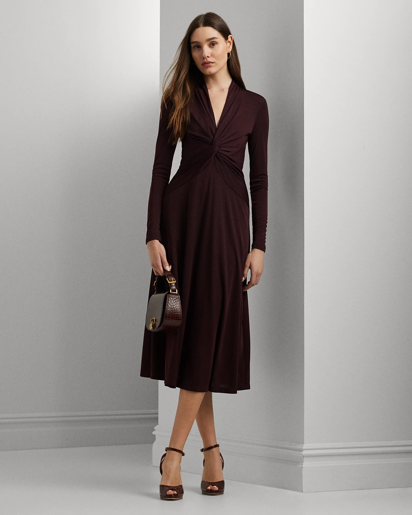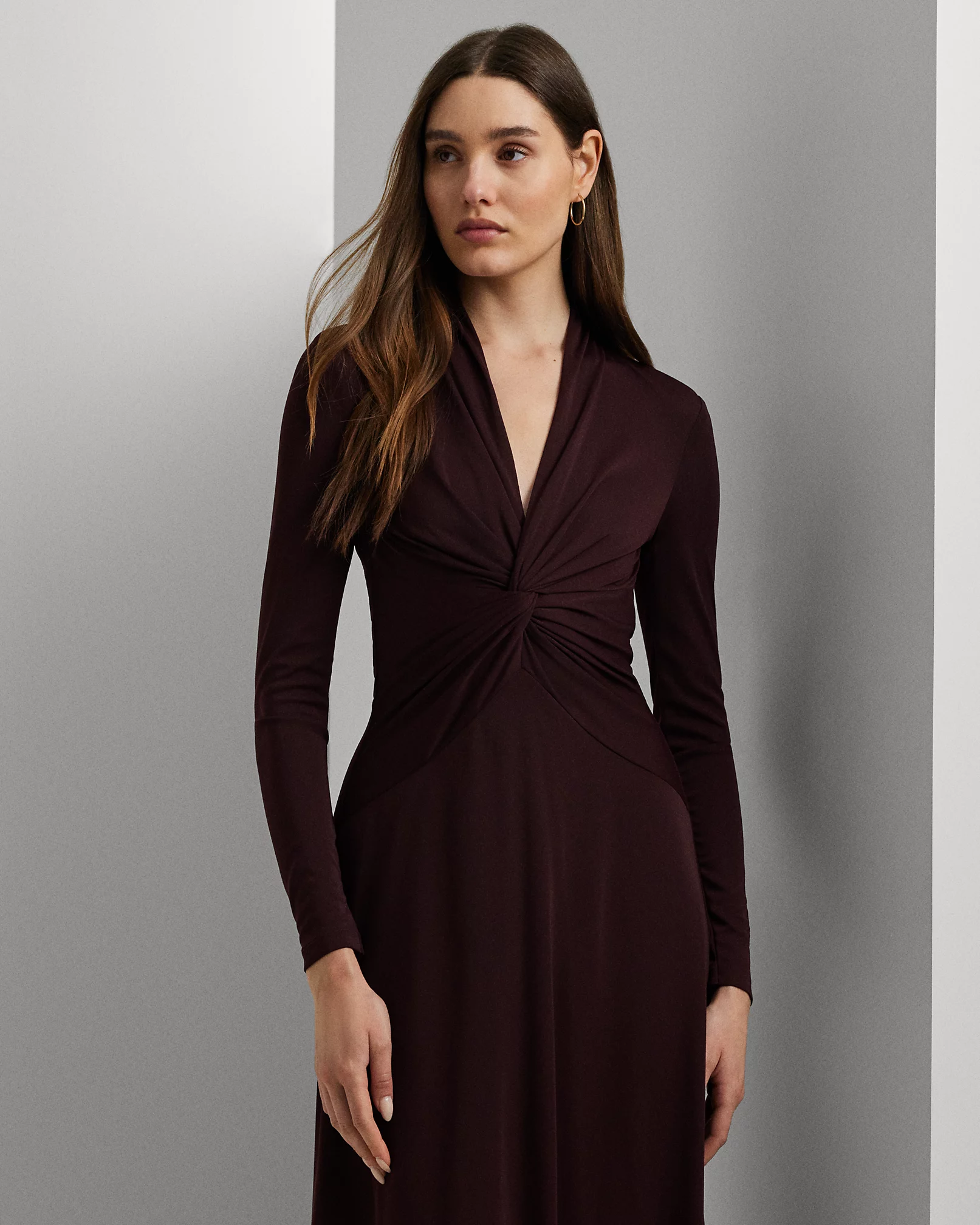 Questo Abito in jersey è perfetto per chi desidera uno stile elegante e confortevole. Grazie al morbido tessuto elasticizzato, garantisce massima libertà di movimento. Lo scollo a V incrociato e il dettaglio intrecciato in vita aggiungono un tocco sofisticato, mentre la lunghezza arriva al polpaccio per una silhouette svasata. Disponibile in taglia IT 44 con lunghezza di 121,3 cm e maniche di 61 cm. Il capo è privo di fodera ed è composto per il 94% da poliestere e per il 6% da elastan. Si può lavare in lavatrice o a secco. La modella, alta 178 cm, indossa la taglia IT 40. Color vino.