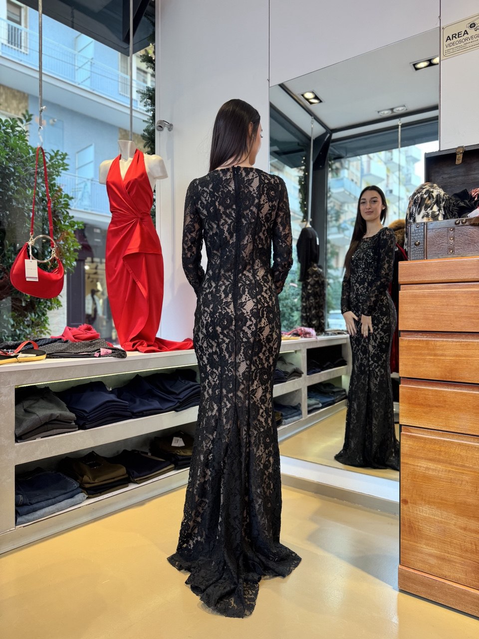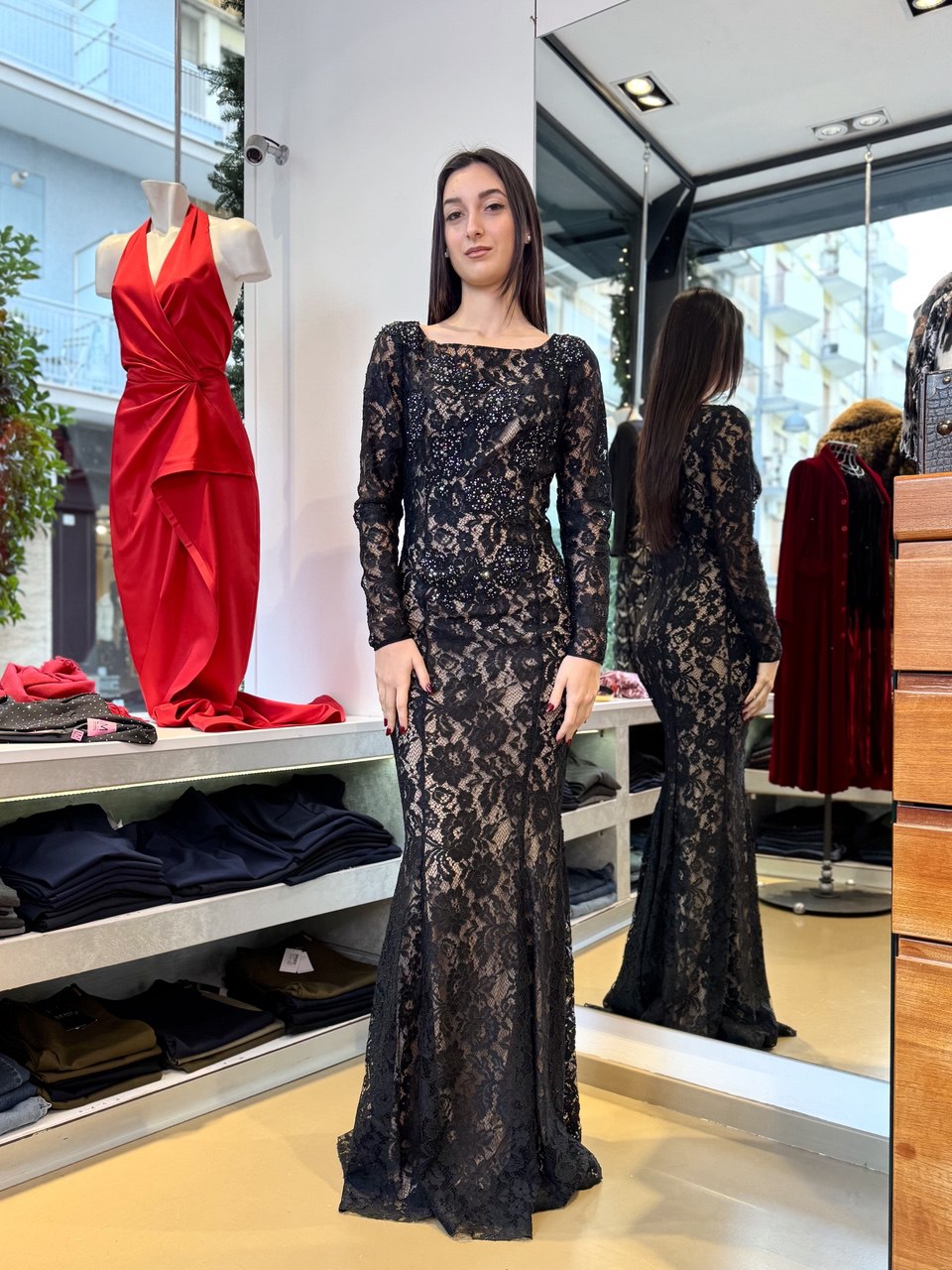 Elegante abito lungo a sirena del prestigioso brand Blumarine, realizzato in pregiato pizzo, perfetto per occasioni speciali e eventi formali. Il design aderente esalta le curve con una silhouette sofisticata, mentre la texture delicata del pizzo conferisce un tocco di raffinatezza e femminilità. La gonna a sirena crea un effetto drammatico e affascinante, ideale per chi desidera un look di grande impatto. Versatile per matrimoni, cene di gala e cerimonie, questo abito rappresenta un investimento di stile senza tempo. Composizione: 72% nylon, 28% spandex