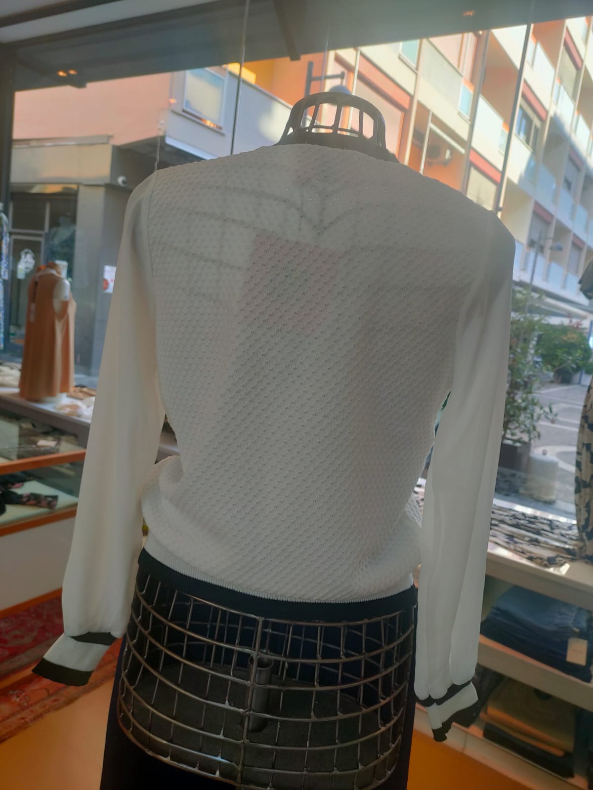 Scopri il nostro blouson finto cardigan, un capo ibrido che unisce l'eleganza di un cardigan con la leggerezza di una blusa. Perfetto per un look raffinato e comodo in ogni occasione, dall'ufficio all'aperitivo.