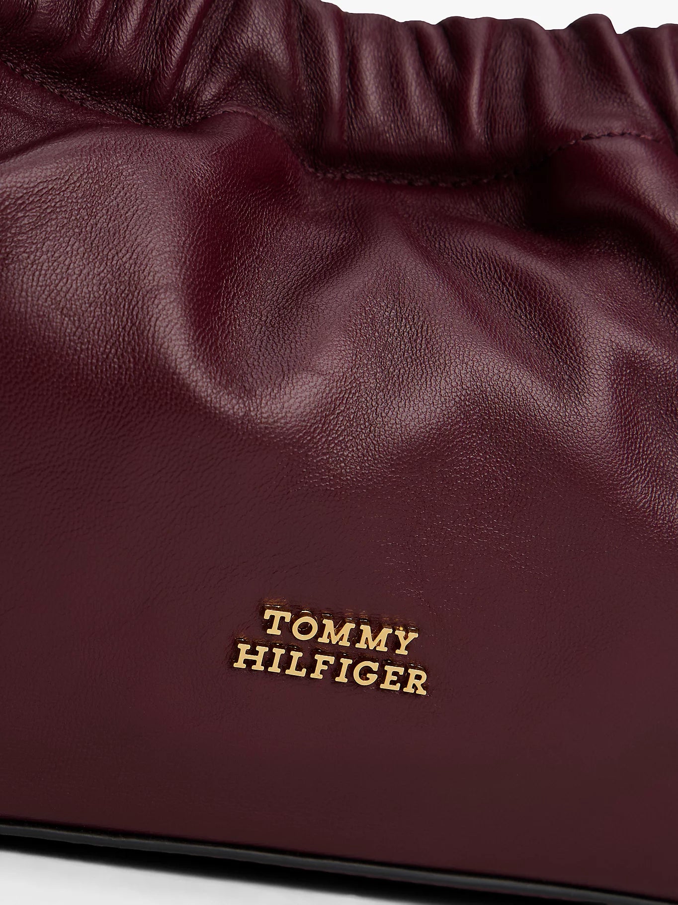 Questa borsa a tracolla in nappa rappresenta un'interpretazione sofisticata del design contemporaneo. La morbida nappa garantisce comfort e durabilità nel tempo, mentre il dettaglio arricciato sull'apertura aggiunge un tocco di eleganza distintivo. La chiusura a doppio pulsante assicura praticità e sicurezza dei vostri effetti personali. La tracolla rimovibile consente versatilità d'uso, permettendovi di indossarla come tracolla o portarla a mano. Lo scomparto principale offre spazio sufficiente per gli oggetti quotidiani, mentre la tasca interna con zip protegge gli articoli più preziosi. L'iconica placchetta con logo Tommy Hilfiger sul davanti conferisce autenticità e riconoscibilità al pezzo. Disponibile in tre tonalità classiche: nero, marrone e bordeaux. Composizione: 100% pelle. Dimensioni cm 22x8x15