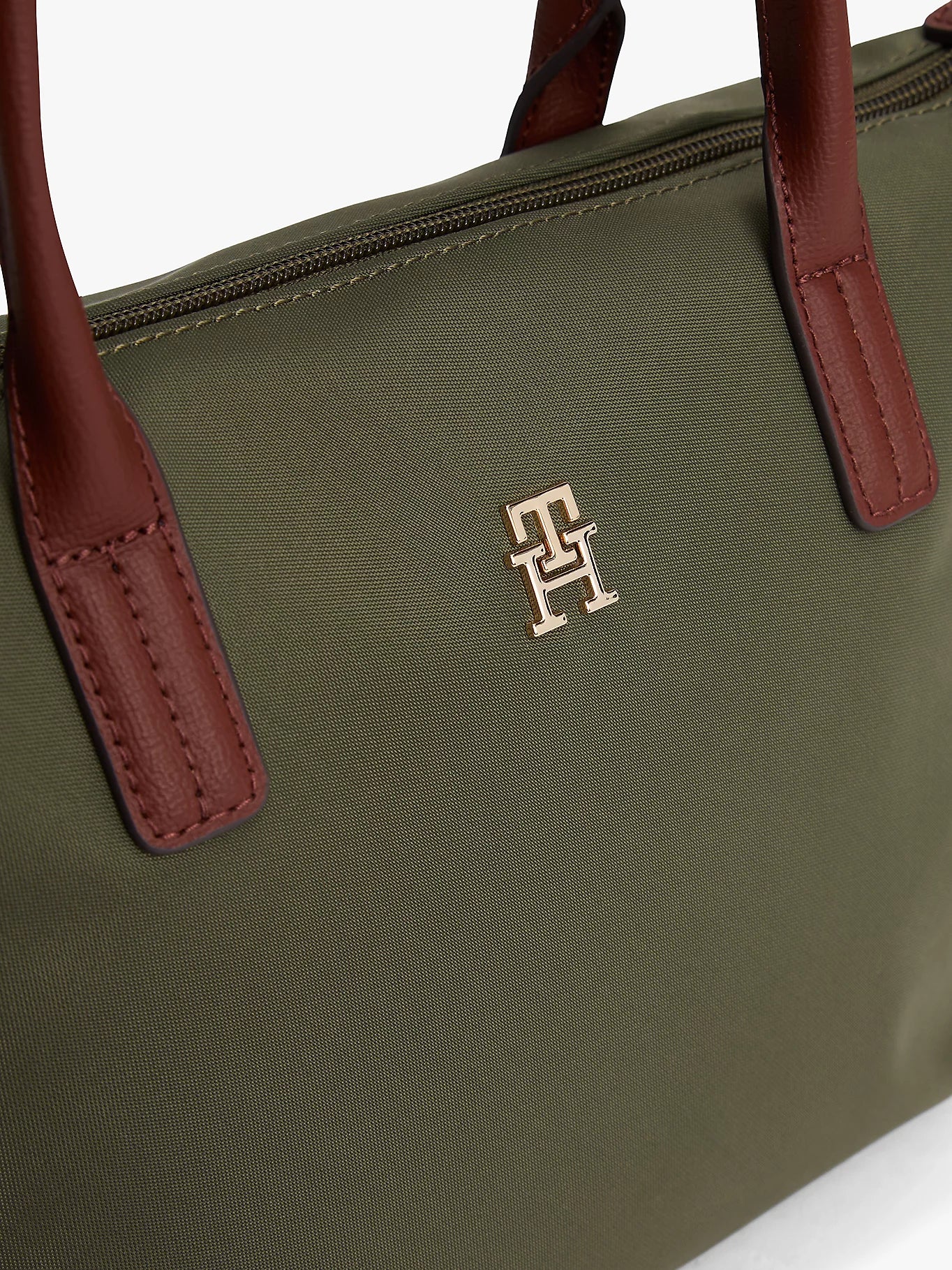 La borsa tote in nylon, dotata di chiusura con zip e doppio manico, unisce funzionalità e stile. La tracolla rimovibile in tessuto offre versatilità nel trasporto, mentre l’hardware con monogramma TH aggiunge un tocco distintivo. All’interno, uno scomparto principale, una tasca con zip e due tasche aperte garantiscono organizzazione ottimale. Con dimensioni compatte di 30 x 14 x 18,5 cm, è ideale per completare con eleganza ogni outfit quotidiano.