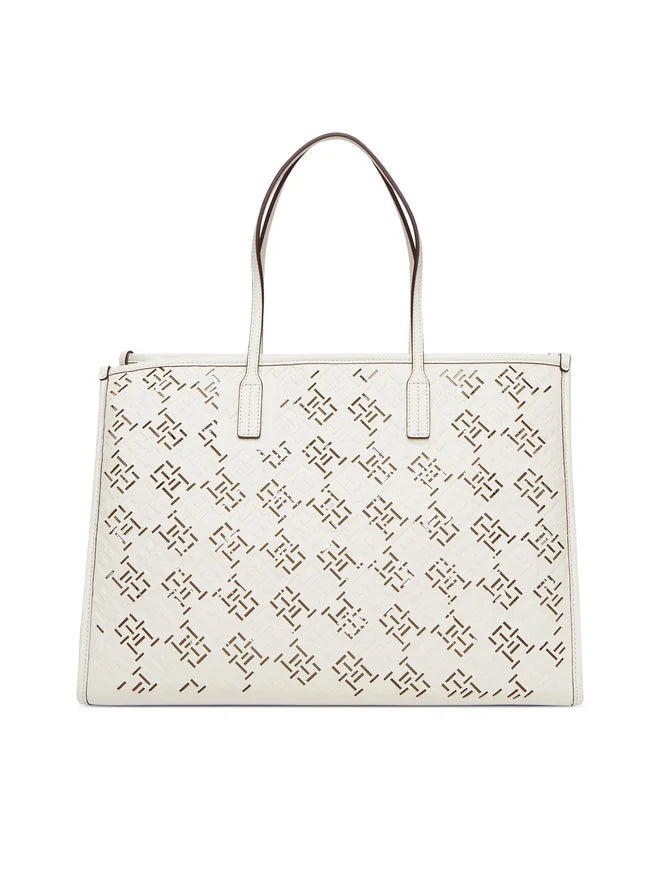 La borsa tote City cammello di Tommy Hilfiger unisce eleganza e funzionalità grazie al suo ampio scomparto interno da 20 litri, ideale per organizzare comodamente gli oggetti quotidiani. Realizzata in poliuretano con finitura tramata, si distingue per il motivo monogrammato TH traforato, che conferisce un tocco raffinato e distintivo. Completa di chiusura magnetica e due manici robusti, questa borsa versatile misura 43 x 17 x 31 cm, offrendo praticità senza rinunciare allo stile. Composizione: 100% poliuretano.