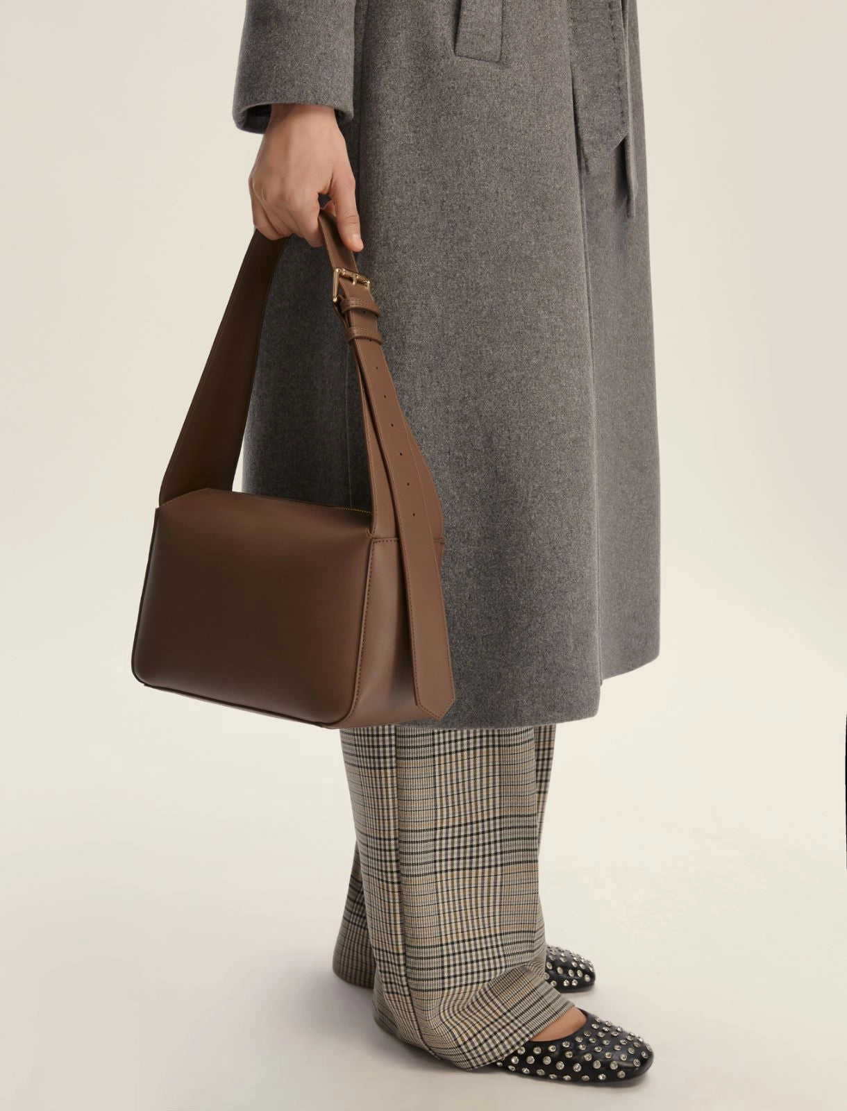 Linee pulite e finiture morbide definiscono questa borsetta a spalla , ideale per un look raffinato e contemporaneo. Il manico regolabile con fibbia dorata permette di portarla comodamente a mano o a spalla, mentre la pouch interna rimovibile aggiunge praticità e flessibilità d’uso. Perfetta per l’uso quotidiano in città, misura 18 x 26 x 12 cm, offrendo un equilibrio ottimale tra compattezza e capienza. Disponibile in marrone o nero, è un accessorio versatile che unisce stile ed eleganza funzionale. Composizione: Borsa in poliestere con spalmatura in poliuretano; fodera in 100%poliestere.