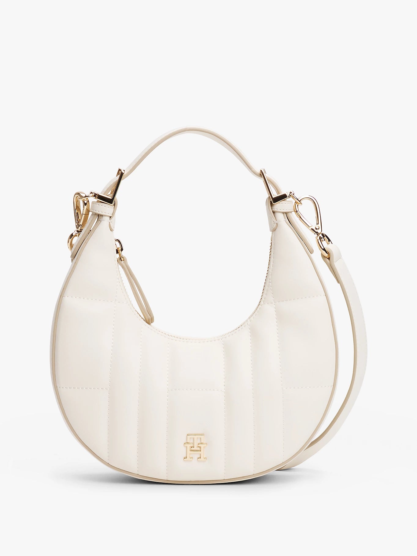 Porta con te uno stile elegante e funzionale con questa affascinante borsa a mezzaluna. Caratterizzata da una finitura liscia, un modello trapuntato e una chiusura con zip, è dotata di una tracolla regolabile, un ampio scomparto principale e una tasca aperta interna. Completa con una scintillante placchetta con il logo Tommy Hilfiger. Dimensione: 22 x 6 x 22 cm