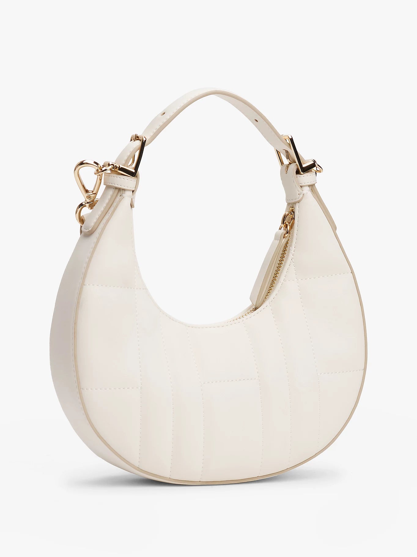 Borsetta bianca a mezzaluna con manico e tracolla staccabile