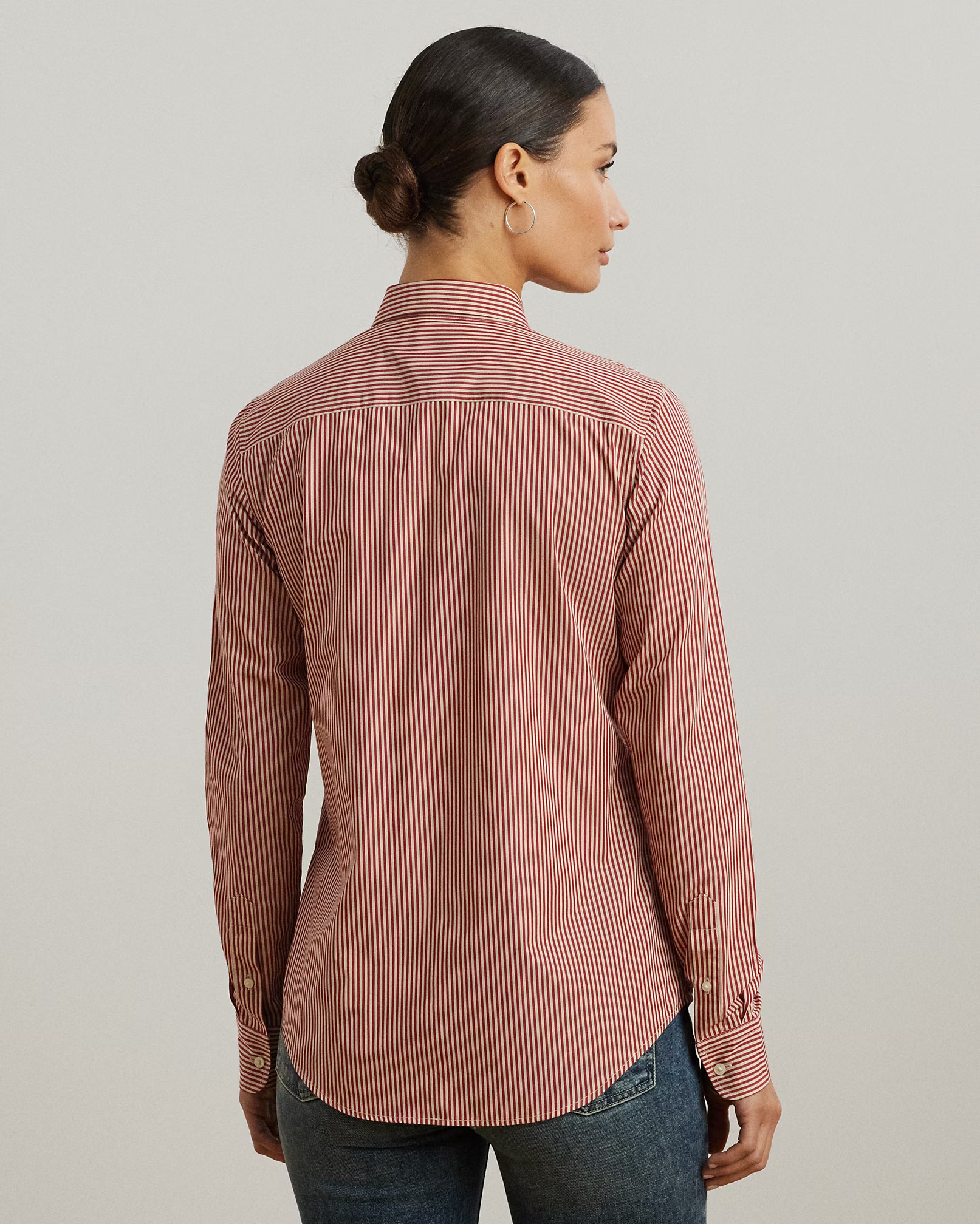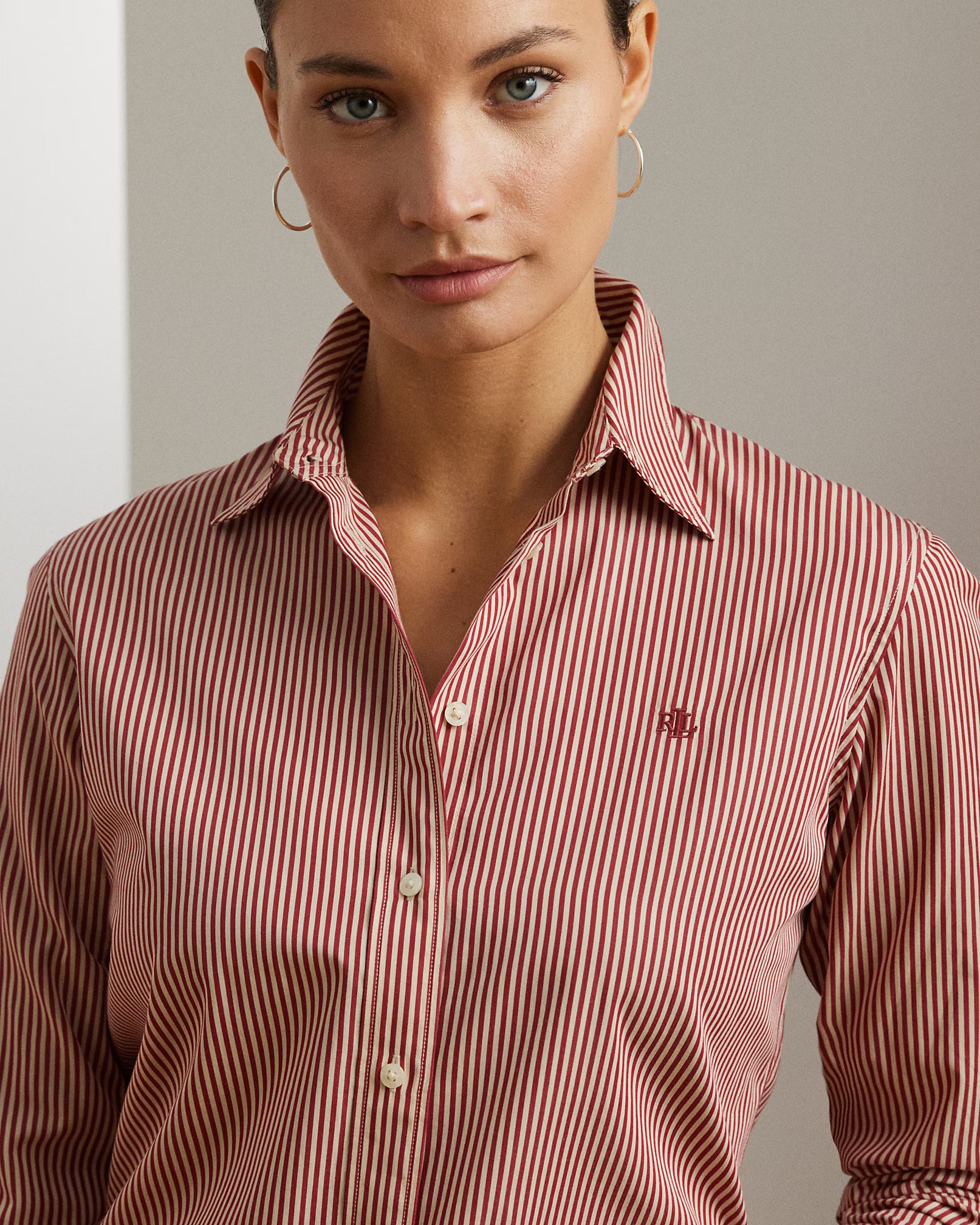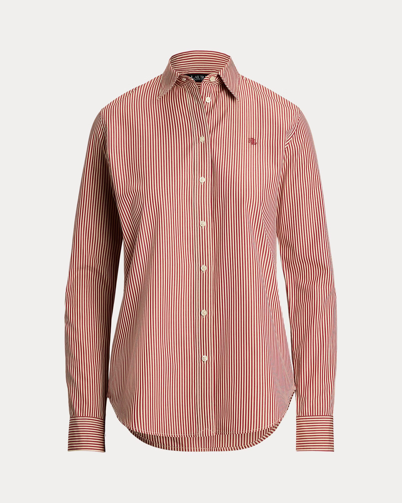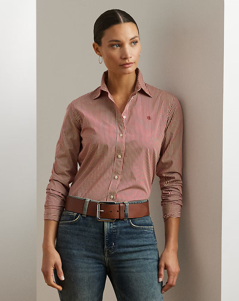 Questa camicia button-down a righe bianche e rosse, realizzata in fresco popeline di cotone, unisce eleganza e comfort per un look sempre impeccabile. Il logo "LRL" ricamato sul petto e i bottoni incisi "Lauren Ralph Lauren" aggiungono un tocco di esclusività, rendendola un capo intramontabile nel guardaroba maschile. Perfetta per chi cerca stile sartoriale con dettagli raffinati.