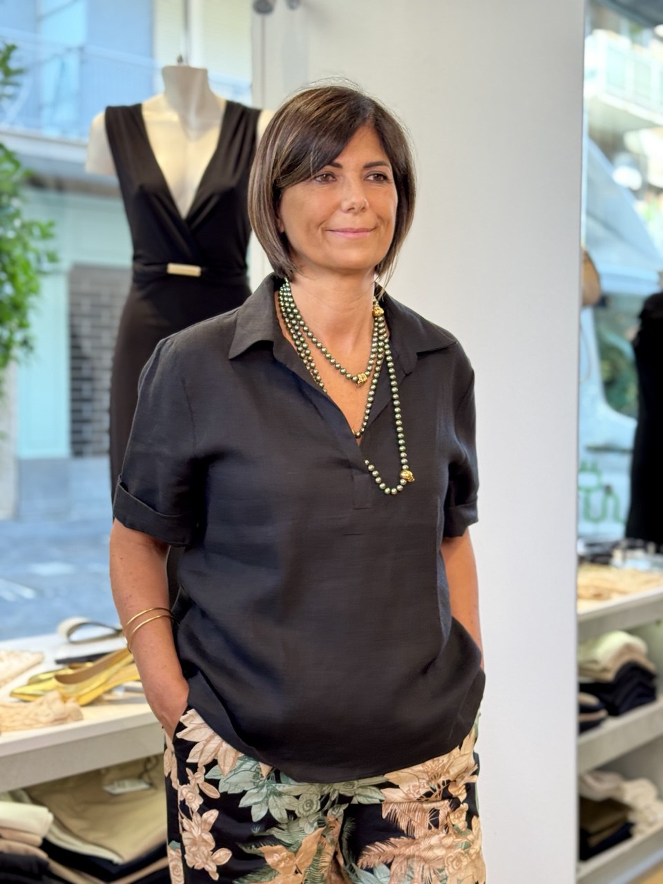Perfetta per un look da giorno, abbinata a pantaloni fantasia come nelle foto per un tocco vivace, o a jeans e shorts per un'estetica più disinvolta. Ottima anche per un aperitivo serale o una passeggiata estiva, per un tocco di eleganza senza sforzo.