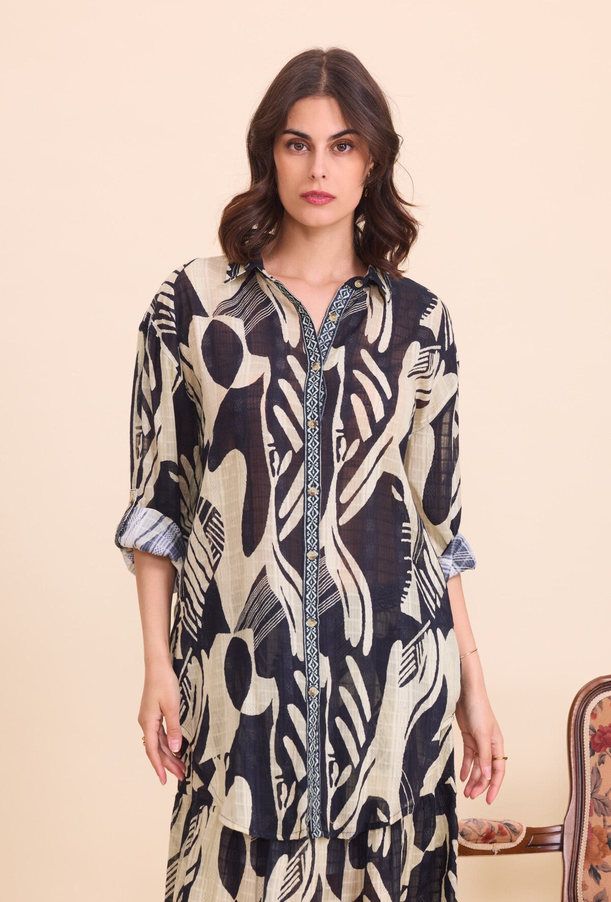 Camicia lunga in cotone stampato