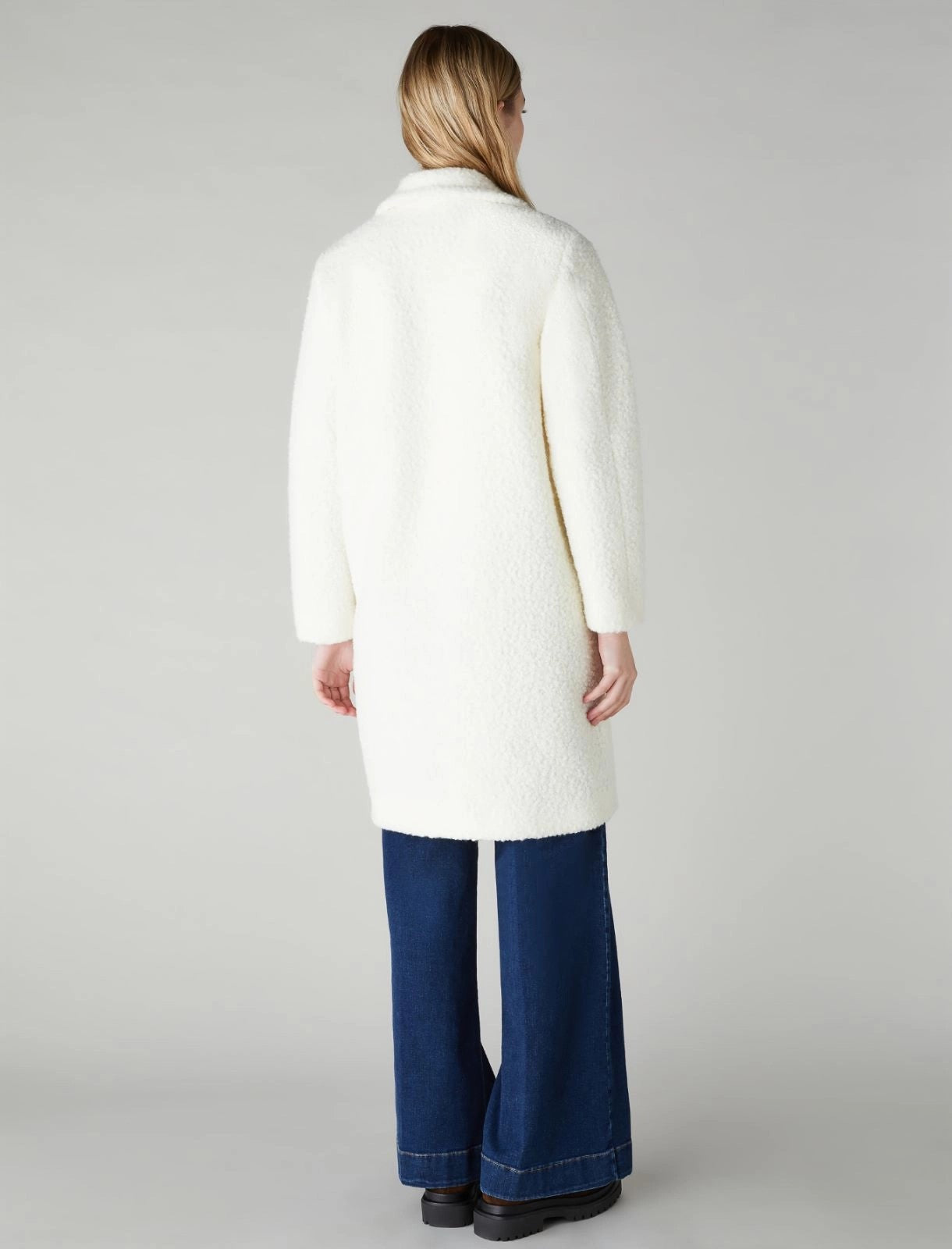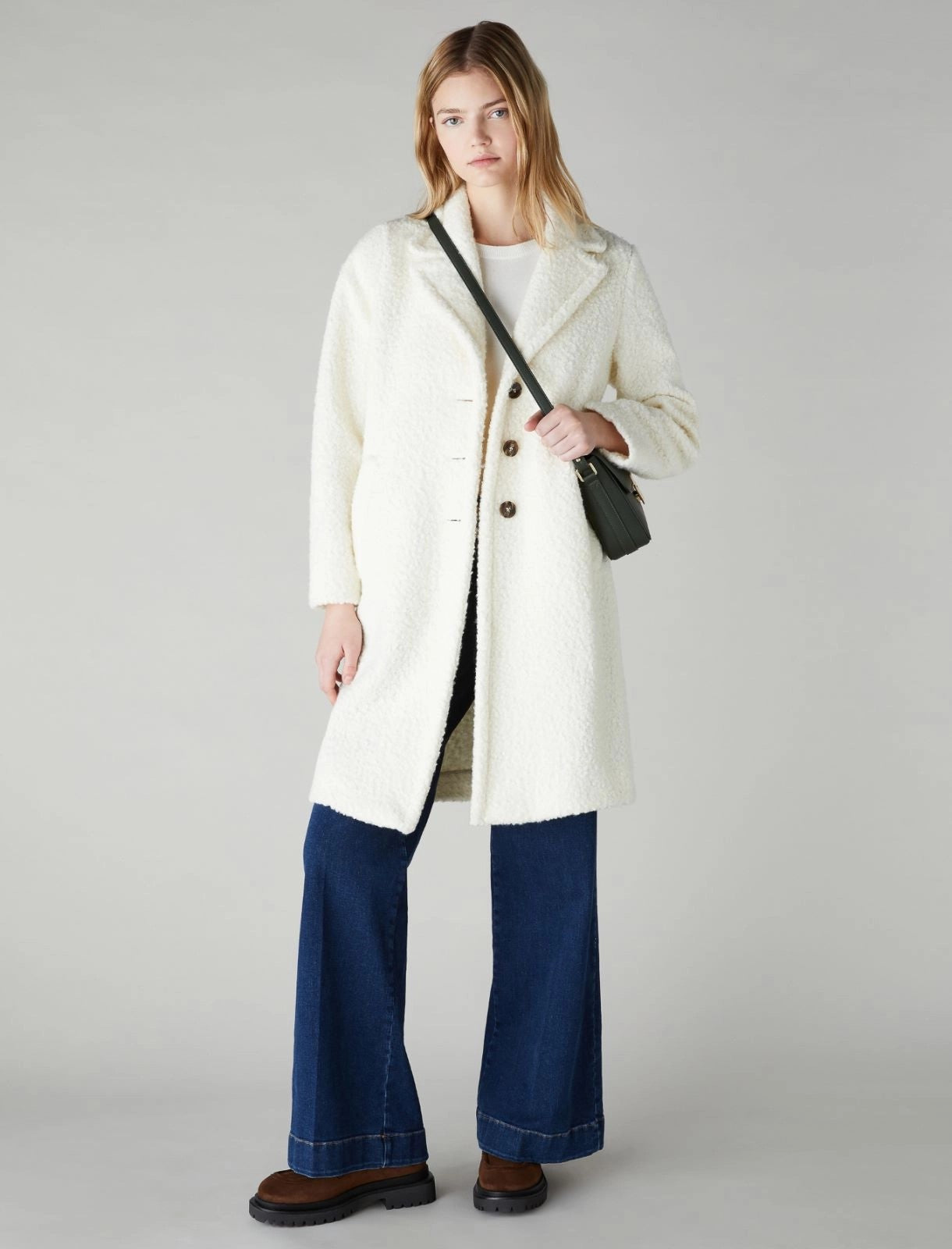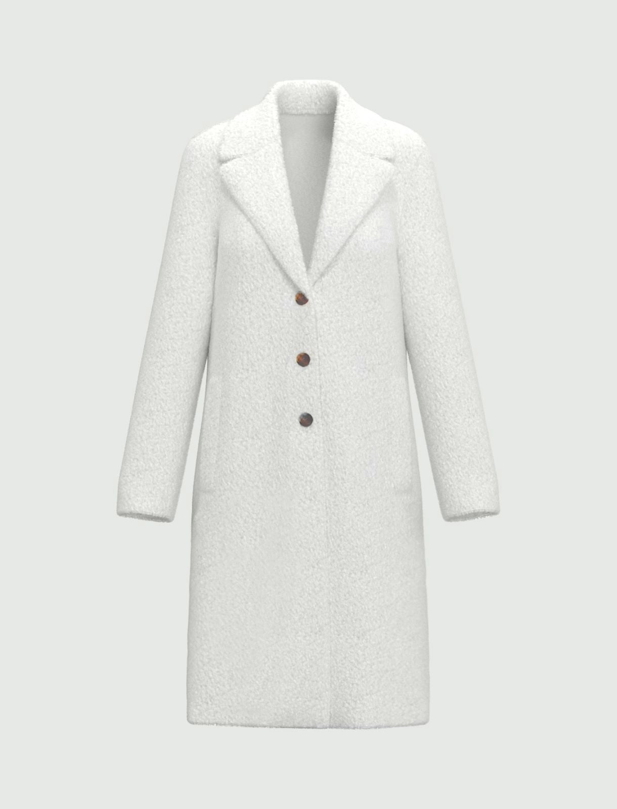 Morbidezza senza paragoni! Realizzato in jersey bouclé dalla texture ultra-soffice, questo cappotto aggiunge un tocco irresistibile ai tuoi look quotidiani. Il design classico monopetto, con collo a revers, unisce versatilità ed eleganza senza tempo.