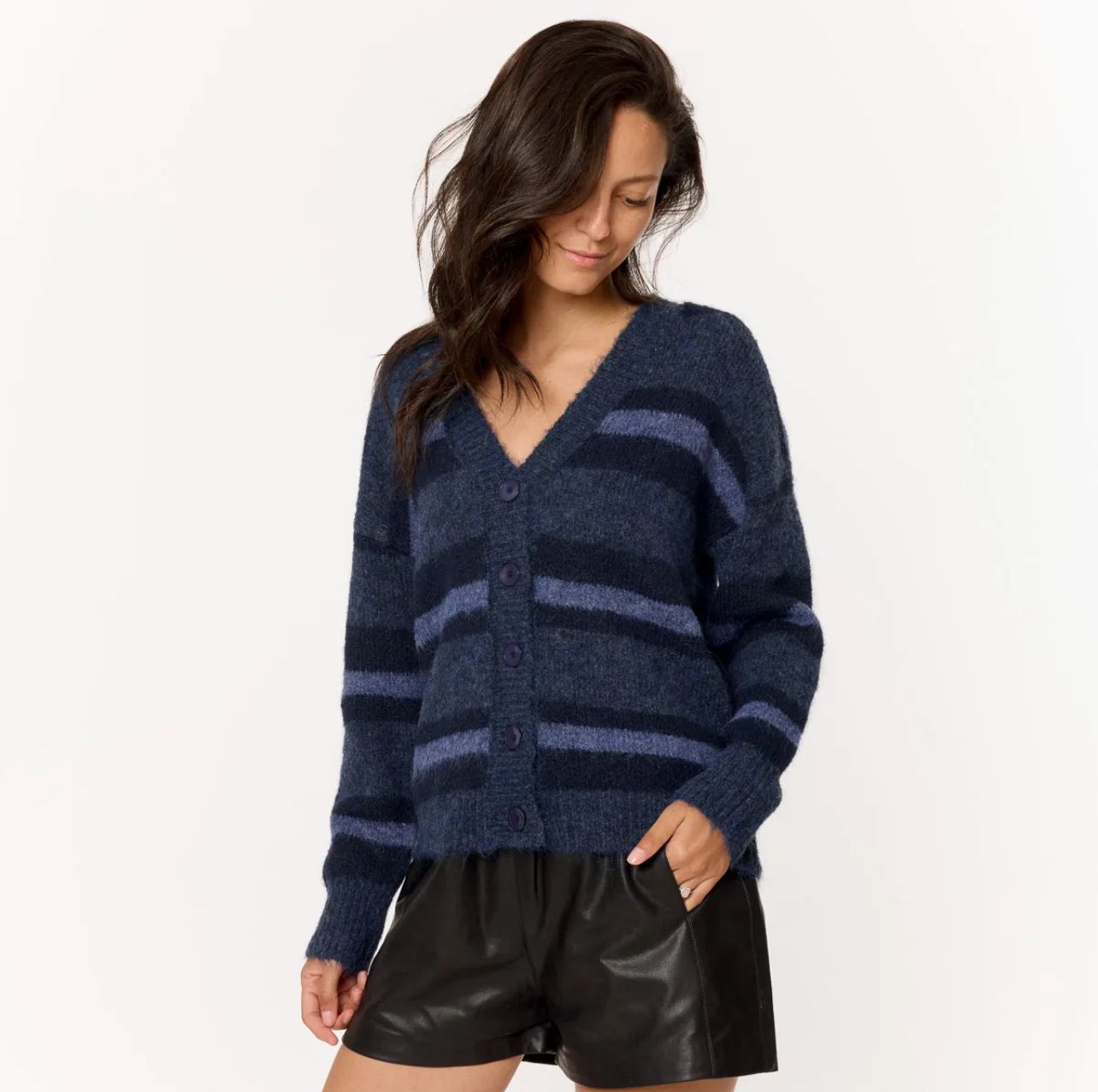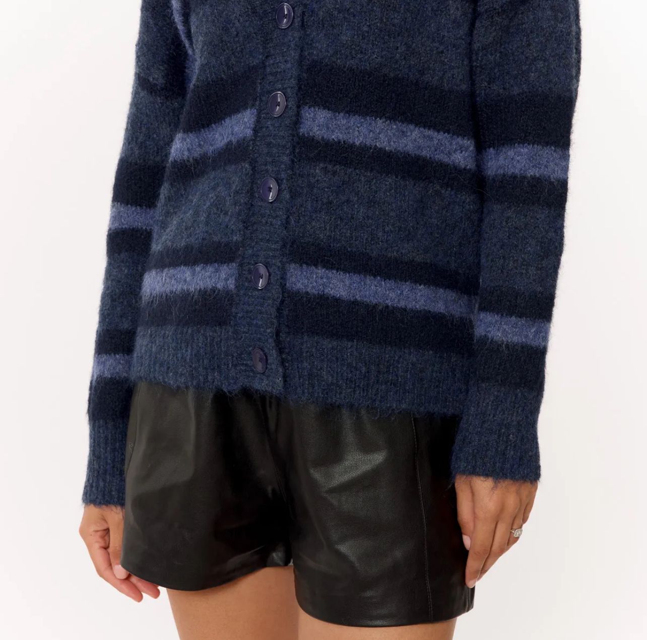 Scopri l'eleganza casual del cardigan firmato Sweewe Paris, caratterizzato da un'accattivante fantasia a righe che sfuma tra le varie gradazioni del blu fino al celeste. Realizzato in un mix di materiali di alta qualità (70% poliestere, 21% poliammide, 8% lana, 1% elastan), questo cardigan offre morbidezza, calore e una leggera elasticità per un comfort ottimale.
