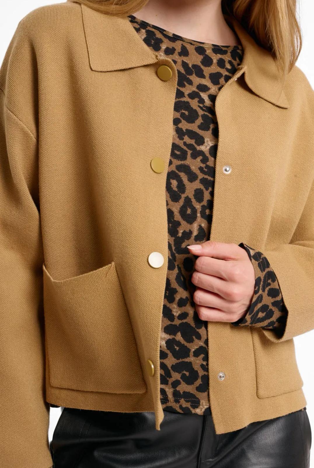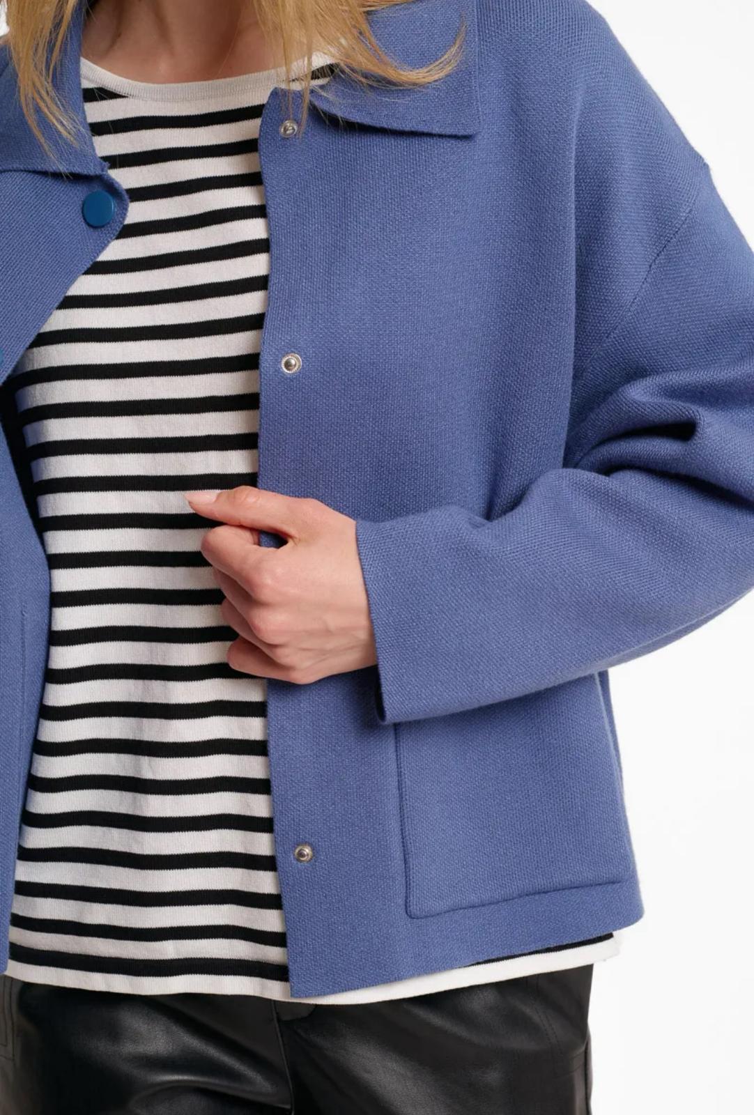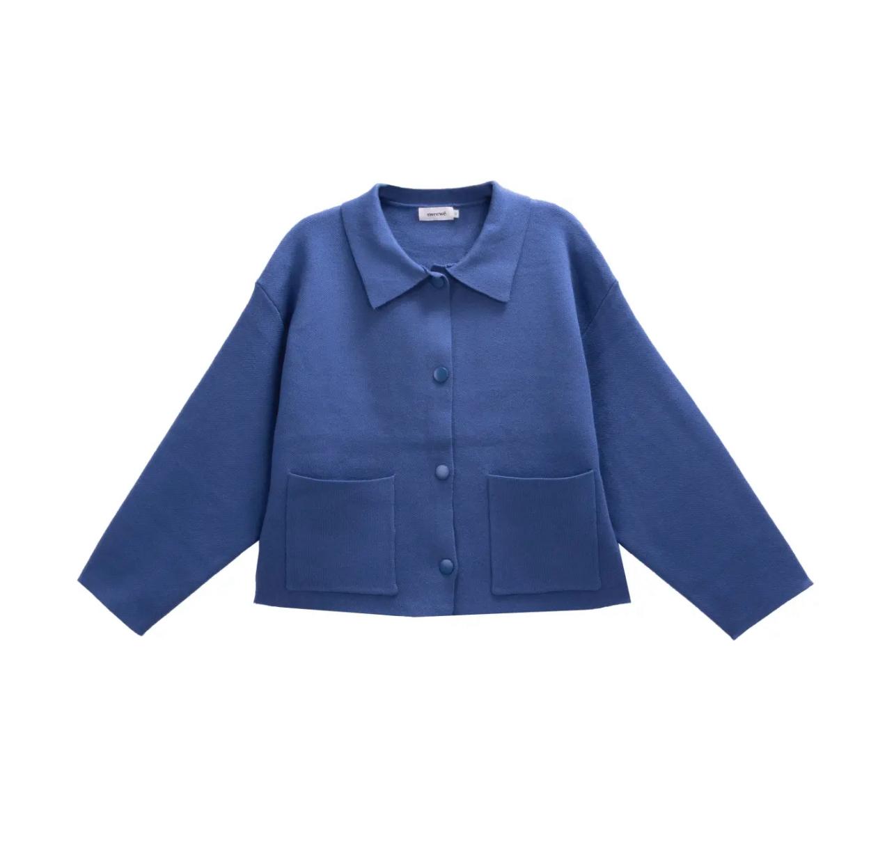 La maglia morbida garantisce una sensazione piacevole sulla pelle, mentre il taglio corto e ampio con spalle scese conferisce un look moderno e rilassato. Il collo a camicia e i tasconi applicati sul davanti aggiungono dettagli funzionali e di tendenza. La chiusura a bottoni sul davanti permette di indossarlo sia aperto che abbottonato, a seconda dello stile che preferisci.