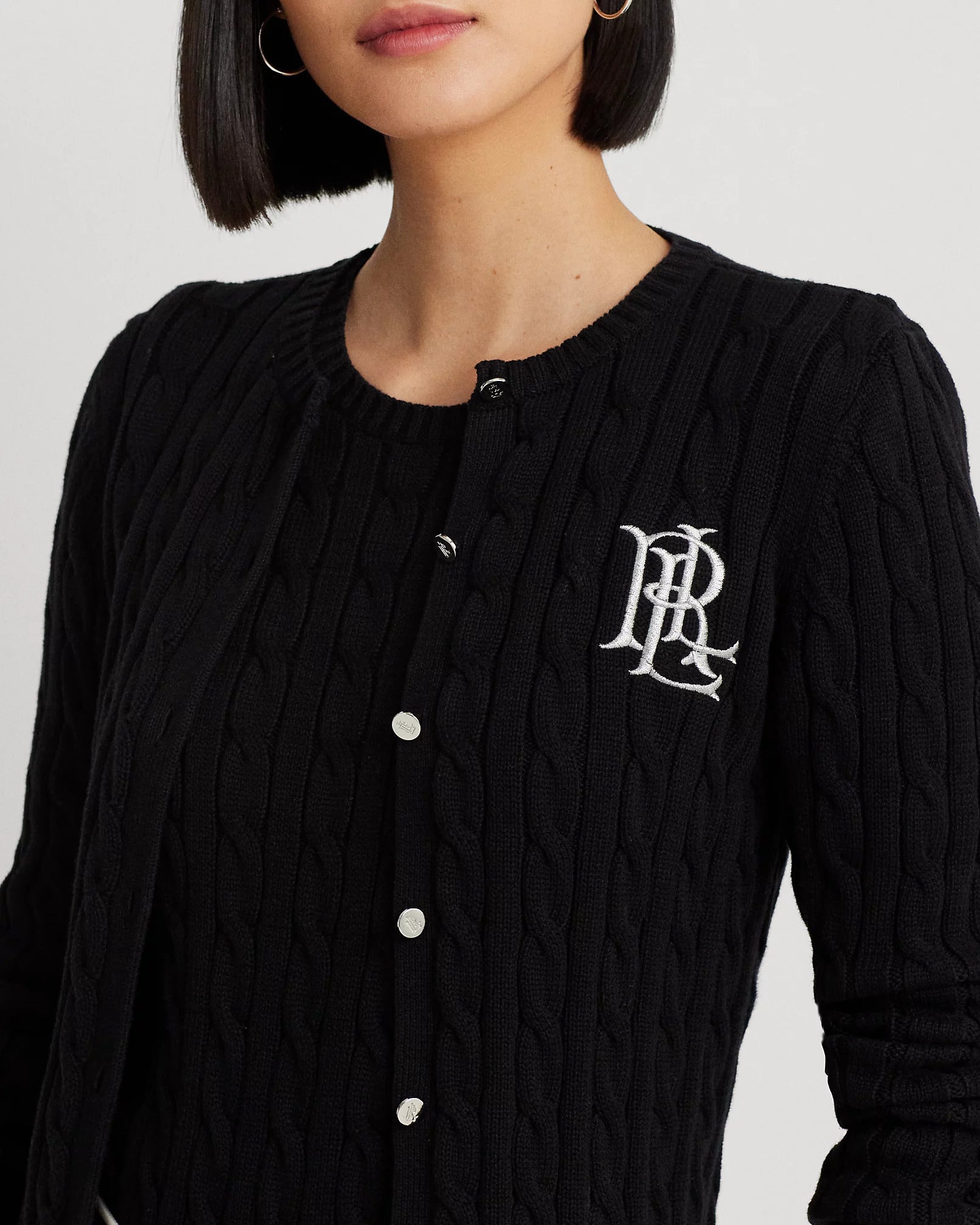Tradizionale e sofisticato, il cardigan Ralhan in maglia a trecce con stemma LRL è realizzato in morbido cotone gasato per un comfort senza pari. I bottoni argento aggiungono un tocco di eleganza, mentre la composizione al 100% di cotone lo rende lavabile in lavatrice per un'igiene facile e conveniente.