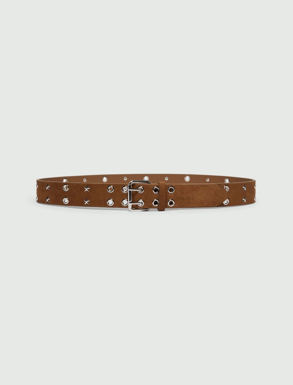 Cintura casual in jersey con finitura vellutata che trasforma ogni outfit con personalità e stile. L'altezza di 4 cm e i dettagli di vele e borchie a stella creano un carattere deciso, perfetto per chi cerca un accessorio versatile da indossare ripetutamente. Fibbia rettangolare in metallo con finitura argentata completa il design. Un pezzo essenziale per aggiungere movimento e interesse visivo ai tuoi look quotidiani.