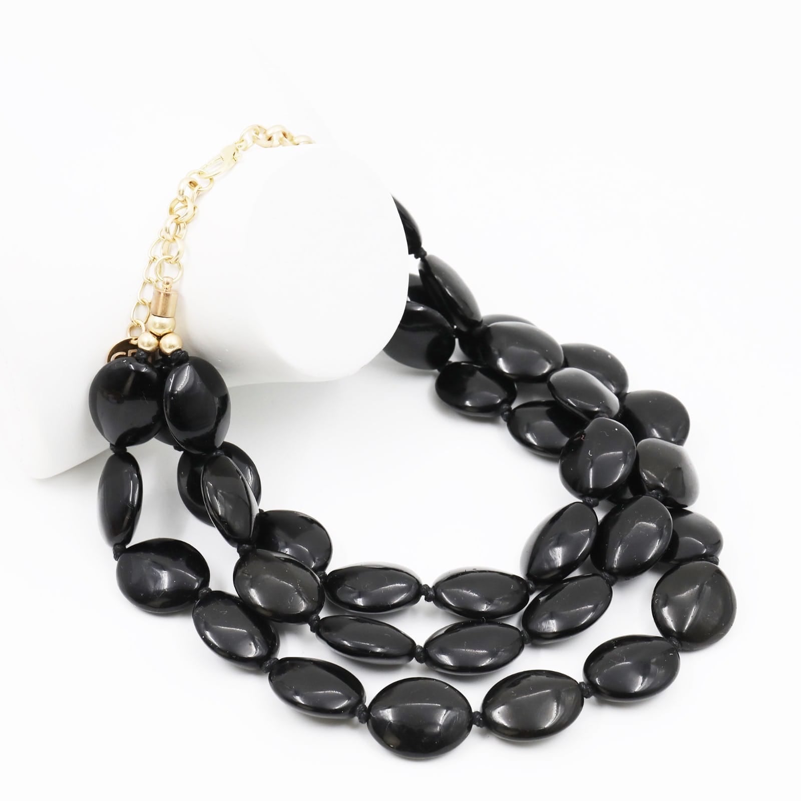 Questa splendida collana a tre giri è realizzata in lega di zinco, bronzo e resina, garantendo un prodotto di alta qualità senza l'utilizzo di nickel e che risulta anallergica. Un accessorio elegante e sicuro per ogni occasione.