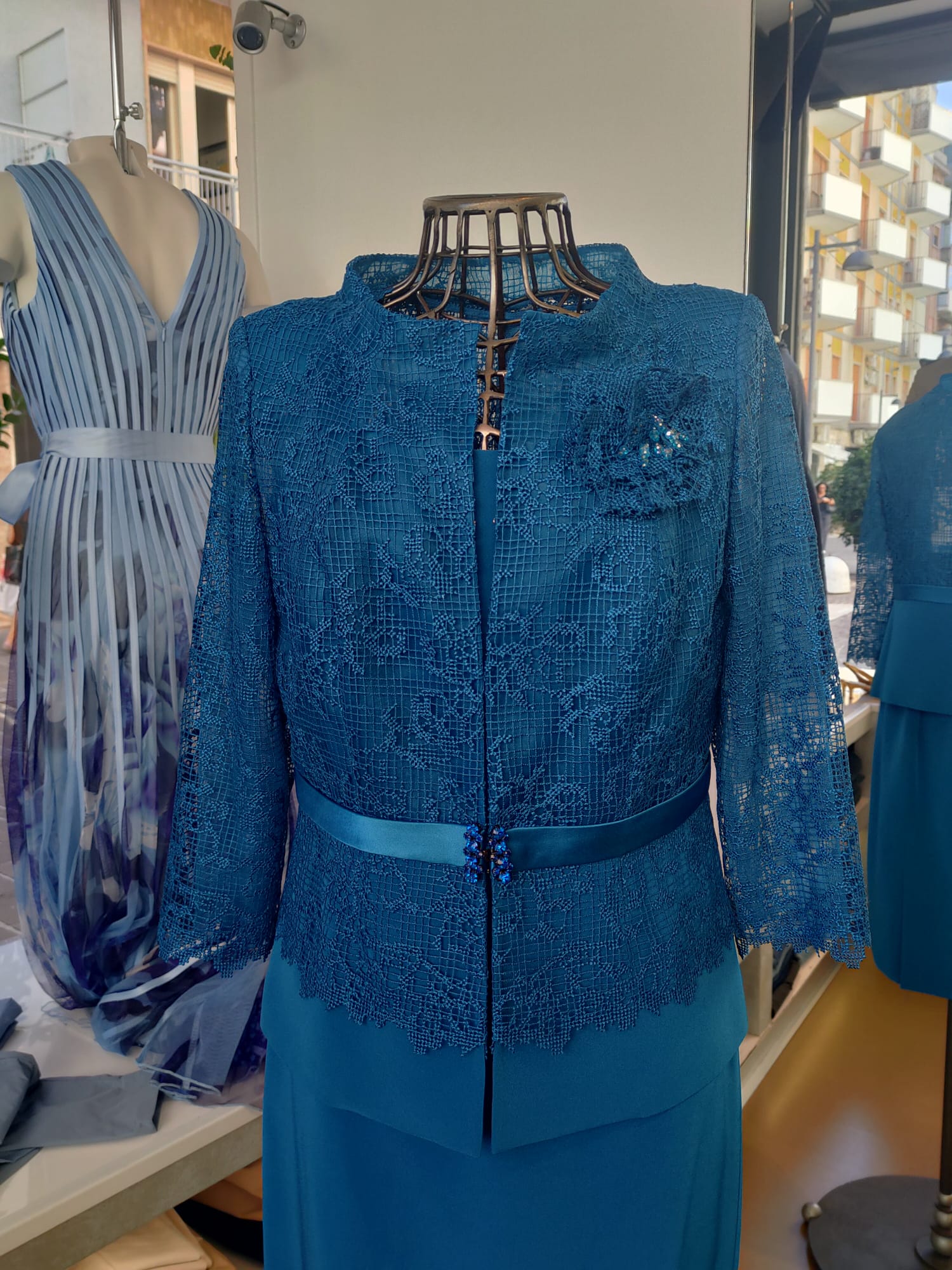 Scopri l'eleganza senza tempo con questo completo a tre pezzi in cady, ora a un prezzo incredibile. Perfetto per cerimonie o eventi speciali, questo abito versatile ti offre due look in uno. Indossa la gonna e la blusa in cady per un'eleganza discreta, oppure aggiungi la giacca con prezioso pizzo a rete per un tocco di raffinatezza e copertura. Sii pronta a farti notare con classe e a un costo che non ti aspetti.