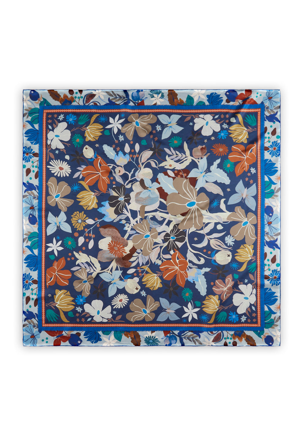 Foulard in seta con motivo floreale in blu