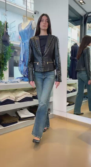 Giacca a Blazer in Pelle Vegana Lavorata con Lacci