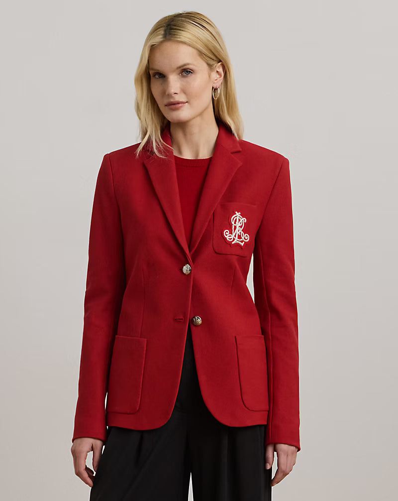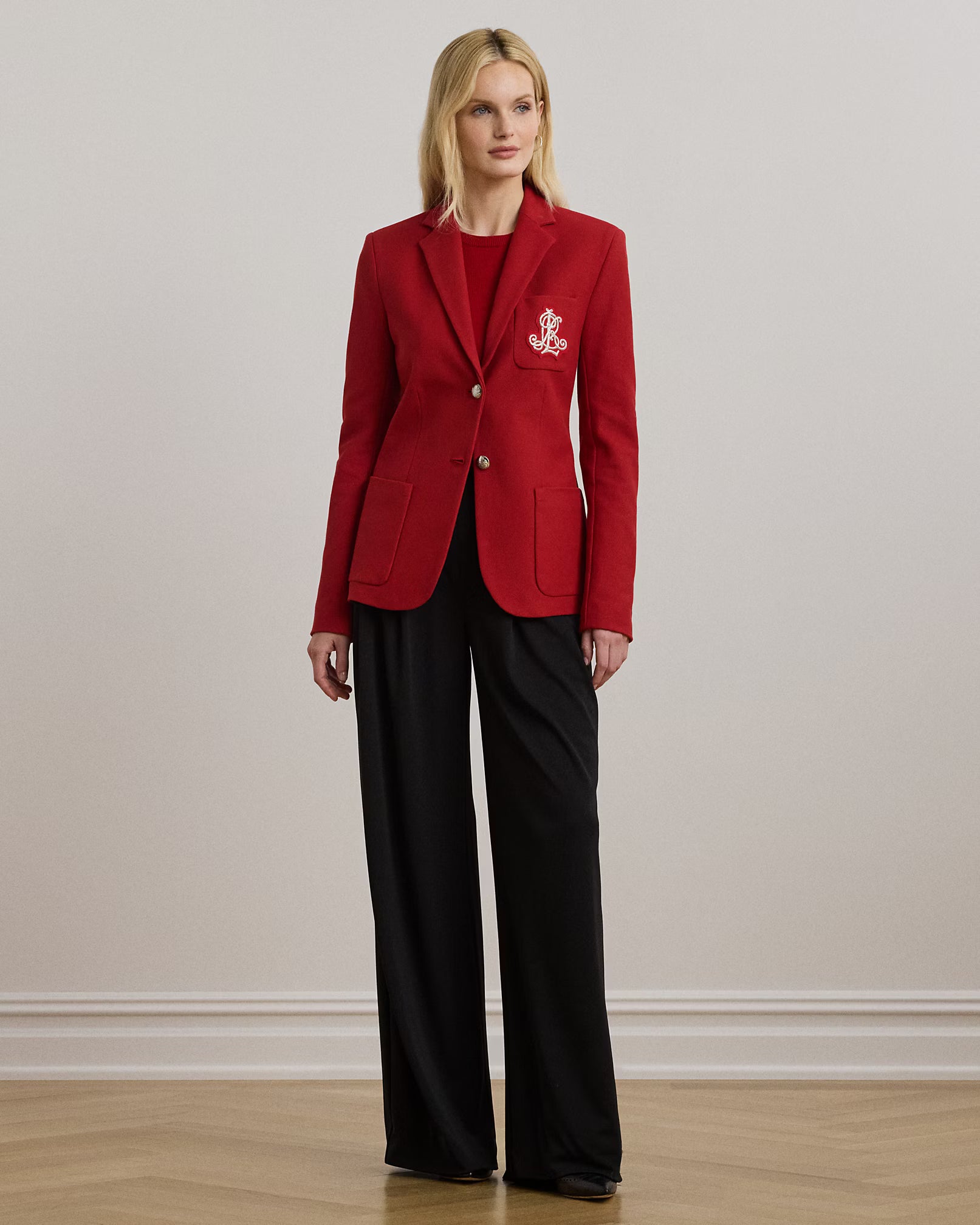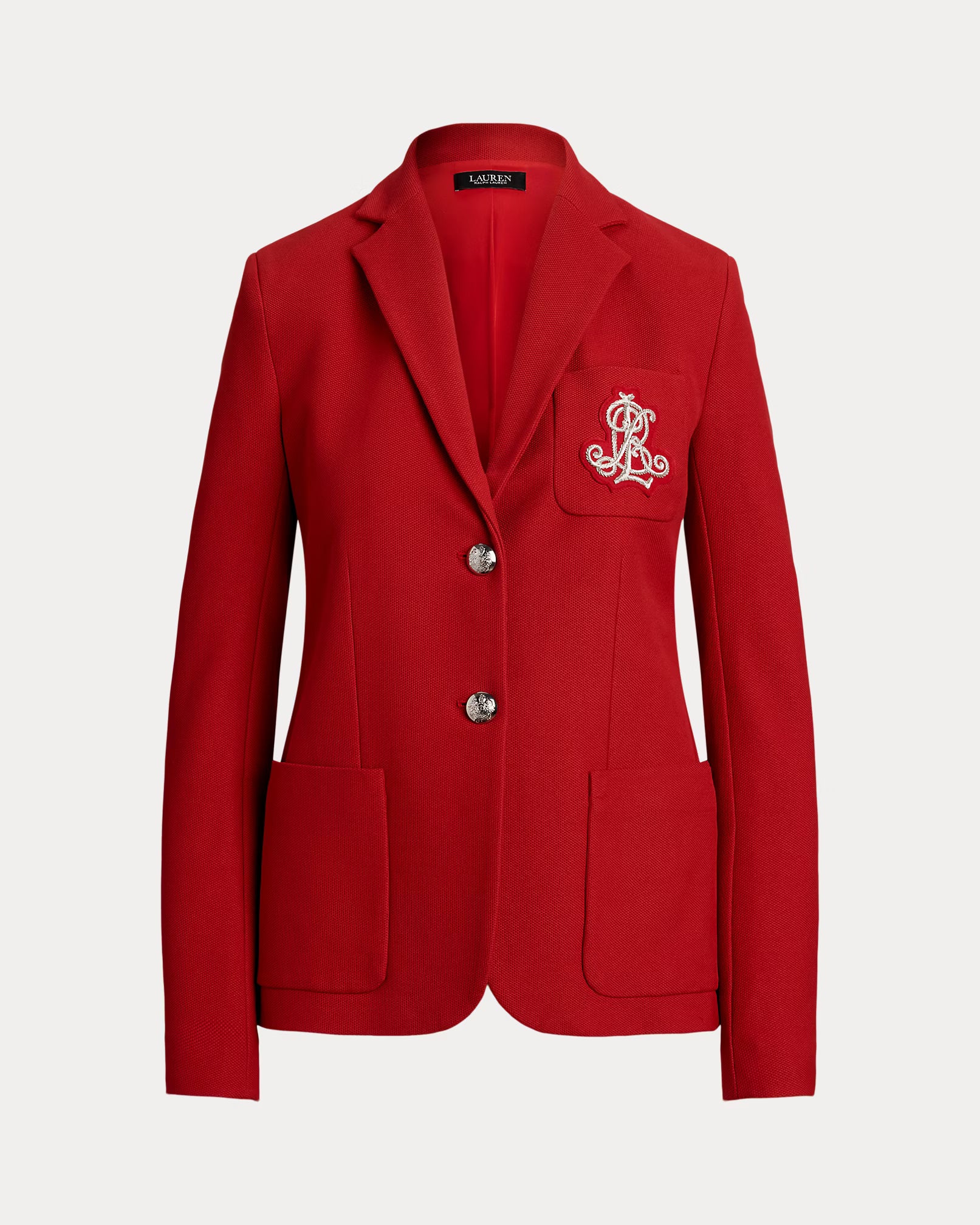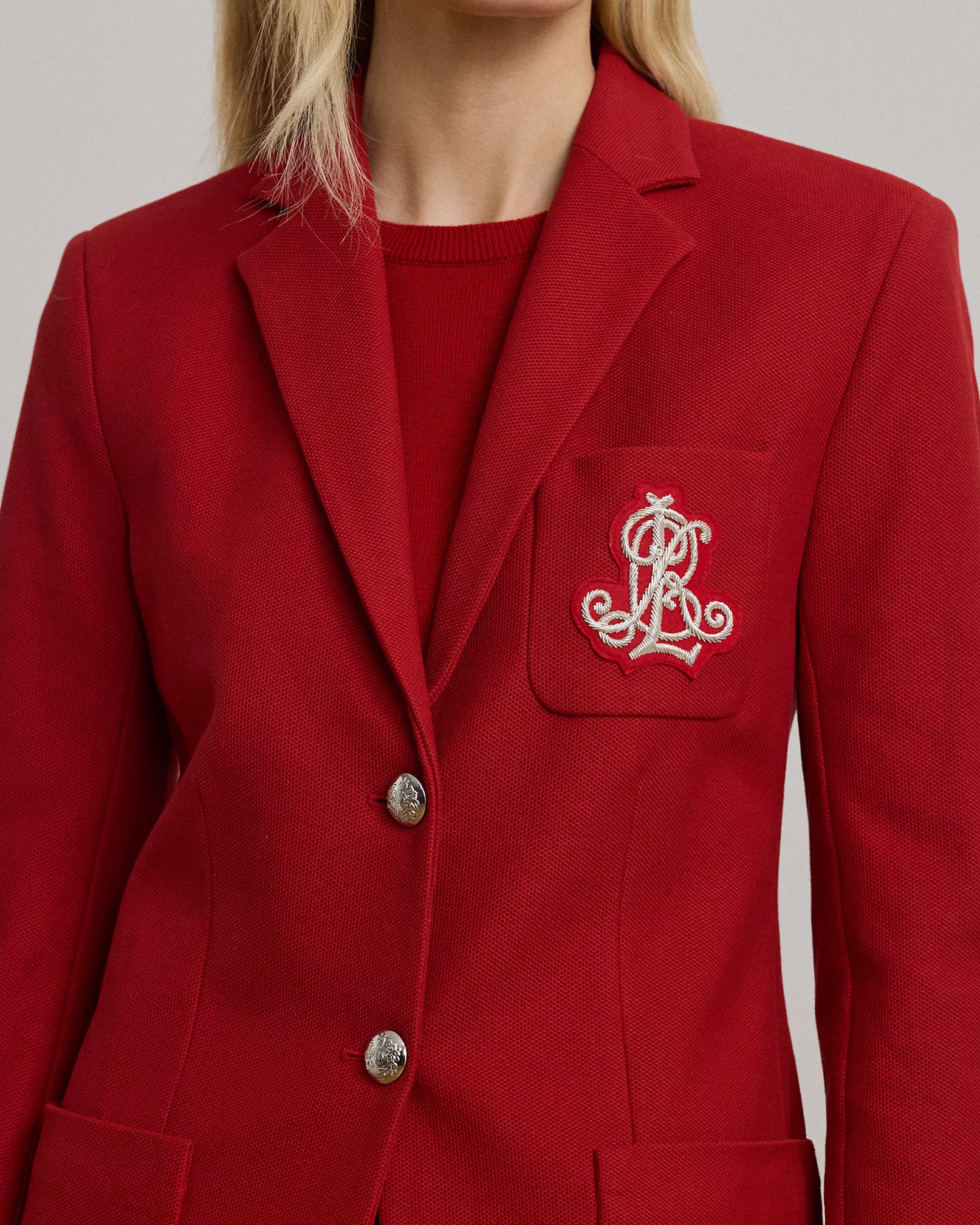Giacca Rossa a Blazer in jacquard con ricamo logo