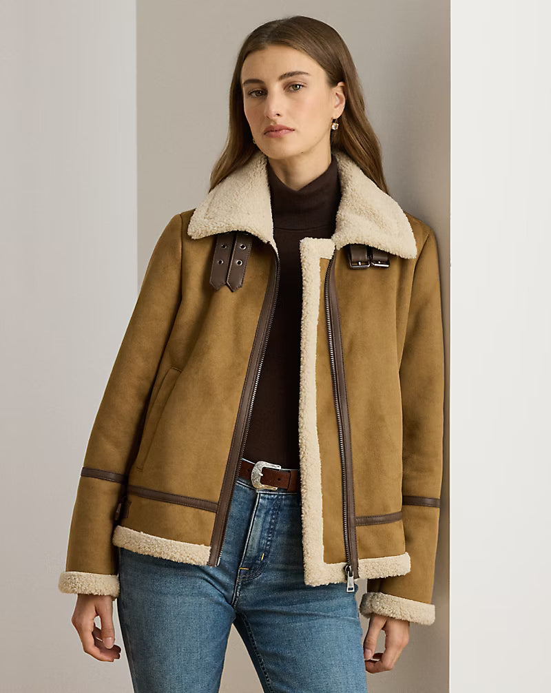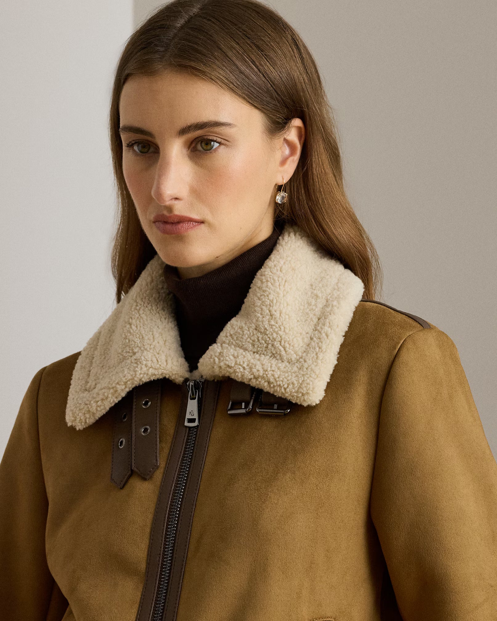 Realizzato in una pregiata combinazione di camoscio e shearling ecologici, questo giaccone in eco montone unisce eleganza e sostenibilità. Il colletto versatile si trasforma facilmente da ampio e morbido a pratico collo a imbuto, adattandosi a diverse occasioni e stili. Le due chiusure alla gola con fibbia in pelle ecologica conferiscono un dettaglio raffinato e confortevole, garantendo al contempo un fit sicuro e personalizzato. Un capo sofisticato, ideale per chi cerca qualità e design consapevole. Composizione: Esterno in camoscio ecologico e retro in shearling ecologico: 100% poliestere. Profilato in pelle ecologica: 60% poliuretano, 40% viscosa.