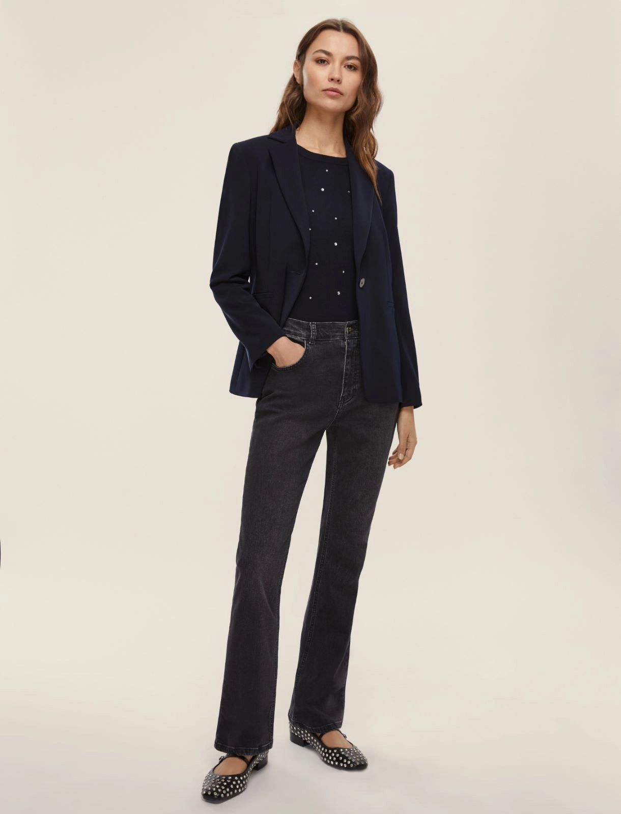 Questa maglia a girocollo unisce comfort e stile, grazie al misto viscosa stretch e al fit leggermente oversize che ne facilitano il movimento. Il dettaglio di cristalli bicolore sul davanti e sulle maniche aggiunge un tocco di raffinato glamour, ideale per un look contemporaneo. Il design con spalla scesa e i bordi a costine completano un capo versatile, perfetto da abbinare a pantaloni slim e blazer per un outfit urbano e sofisticato. Composizione: 70% viscosa, 30% poliammide. Lavare in acqua.