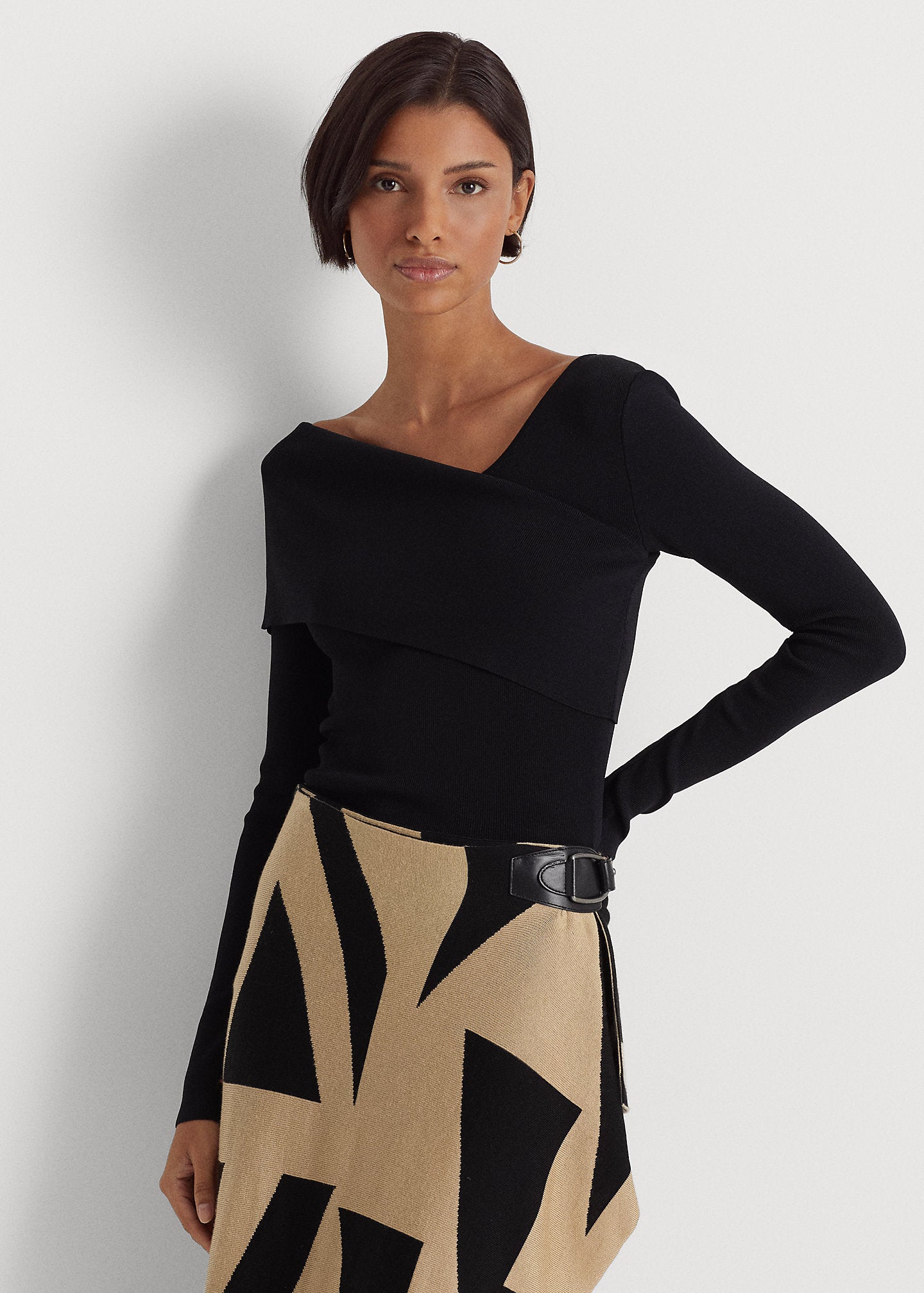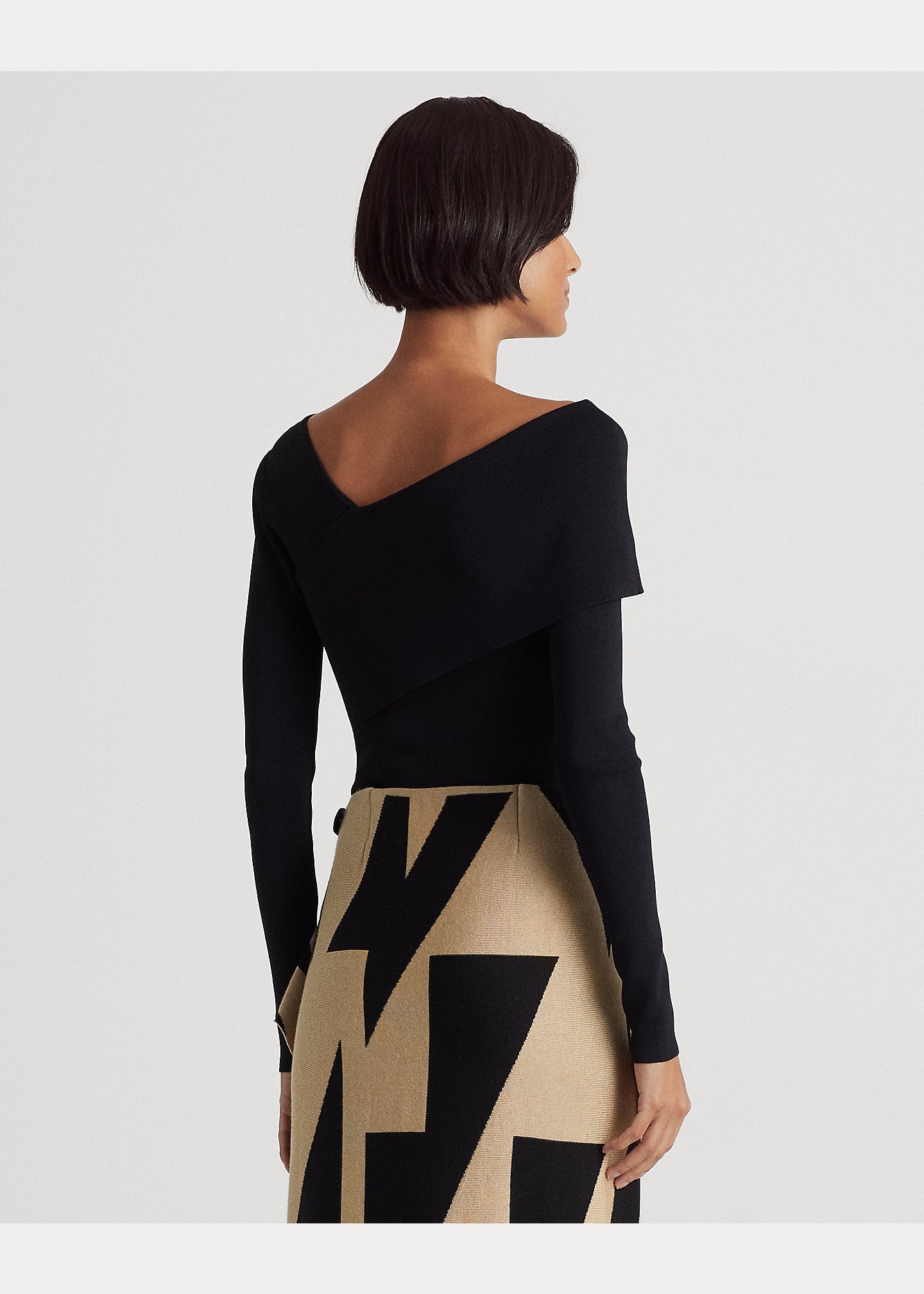 Questa maglia raffinata si distingue per il suo design moderno e minimalista, caratterizzato da una scollatura asimmetrica che aggiunge un tocco di eleganza al tuo guardaroba. Il taglio aderente valorizza la silhouette, rendendola perfetta per outfit sia casual che formali.