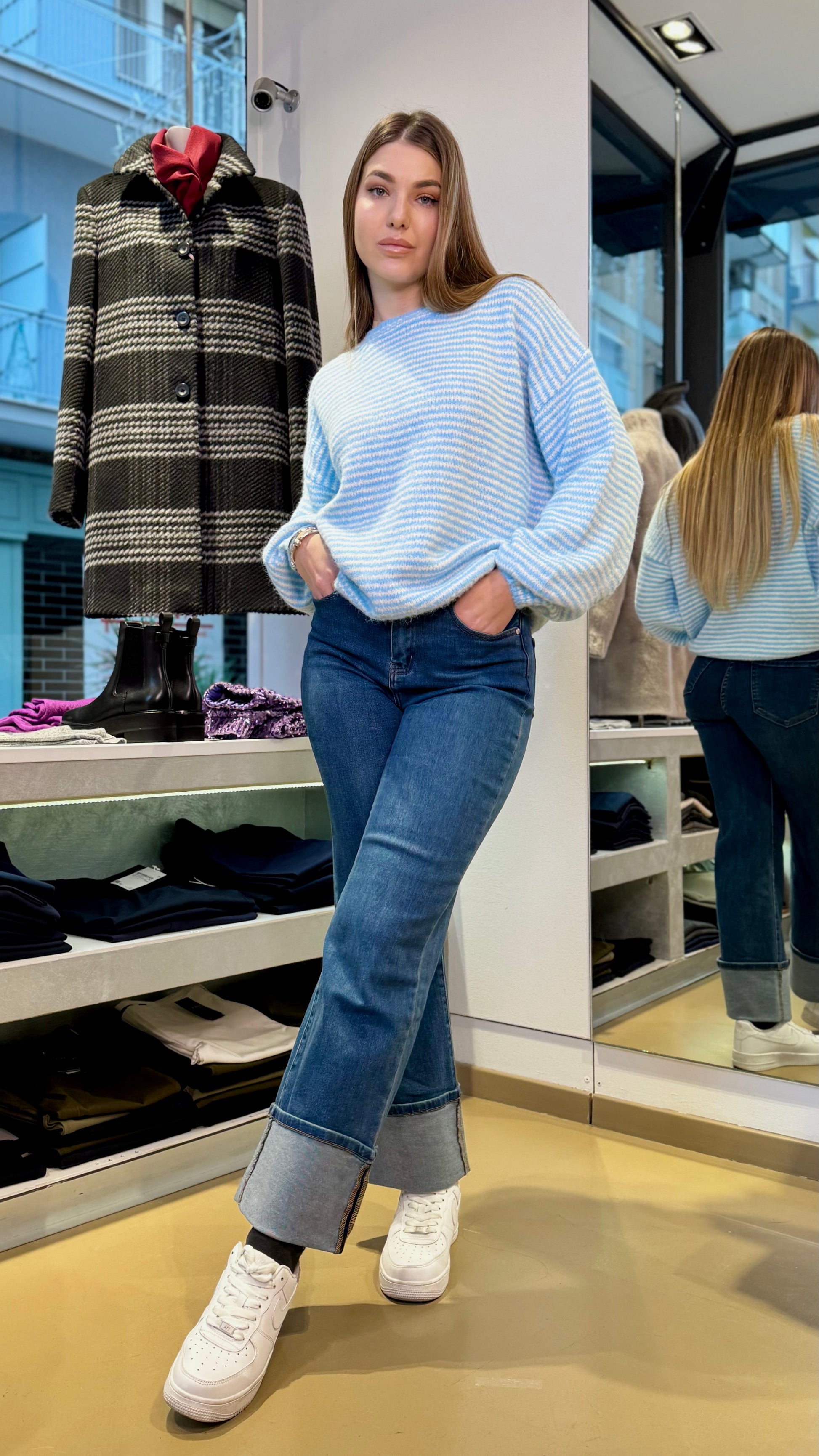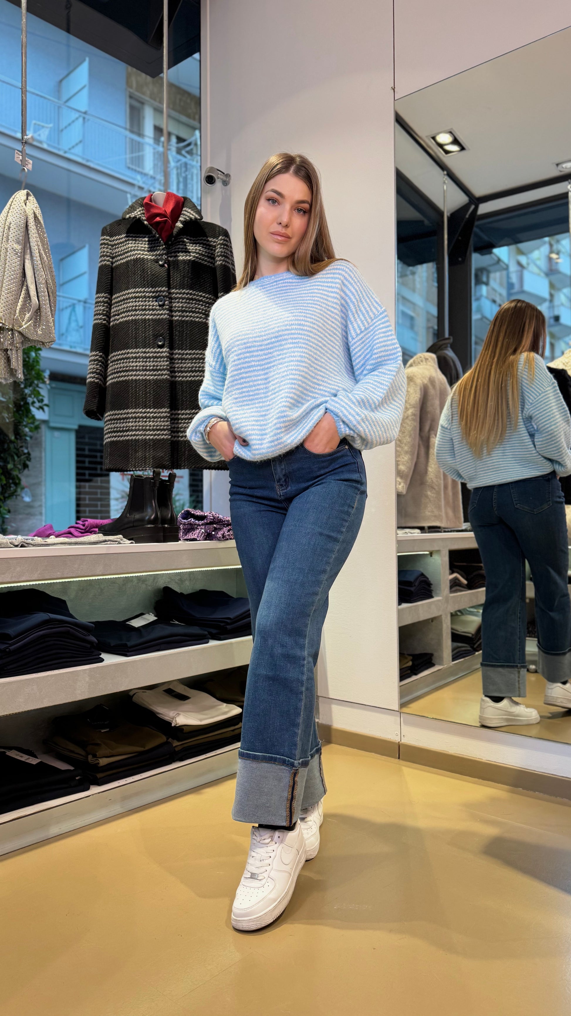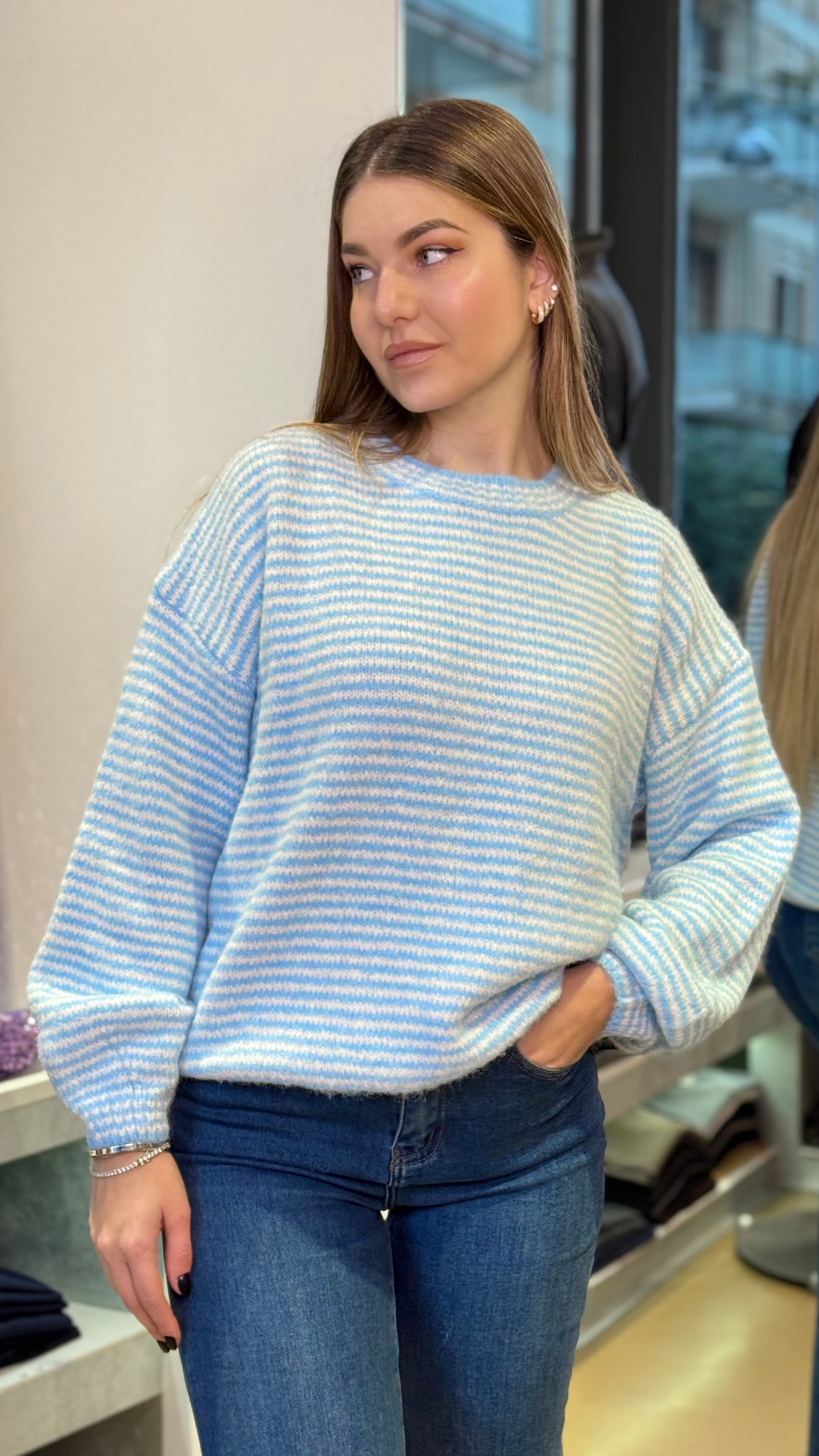 Maglione a Righe Bianco e Celeste