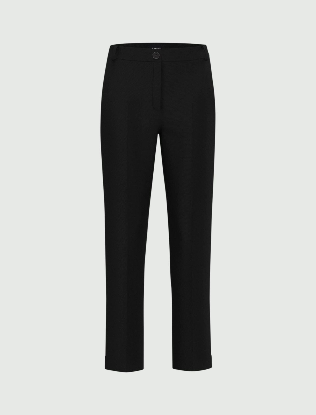 I nostri Pantaloni dritti in tessuto stretch sono eleganti e versatili. La linea chino e la piega stirata fronte e retro donano un tocco sofisticato, mentre la chiusura con bottone e zip nascosti e le tasche alla francese offrono comodità. Con un tocco di elastan, questi pantaloni neri sono perfetti per un look esclusivo. Composizione: 75% poliestere, 19% viscosa, 6% elastan. Lavaggio in acqua. LINEA AUTUNNO/INVERNO