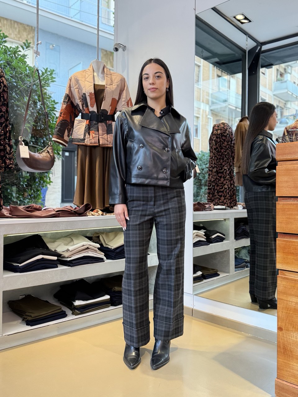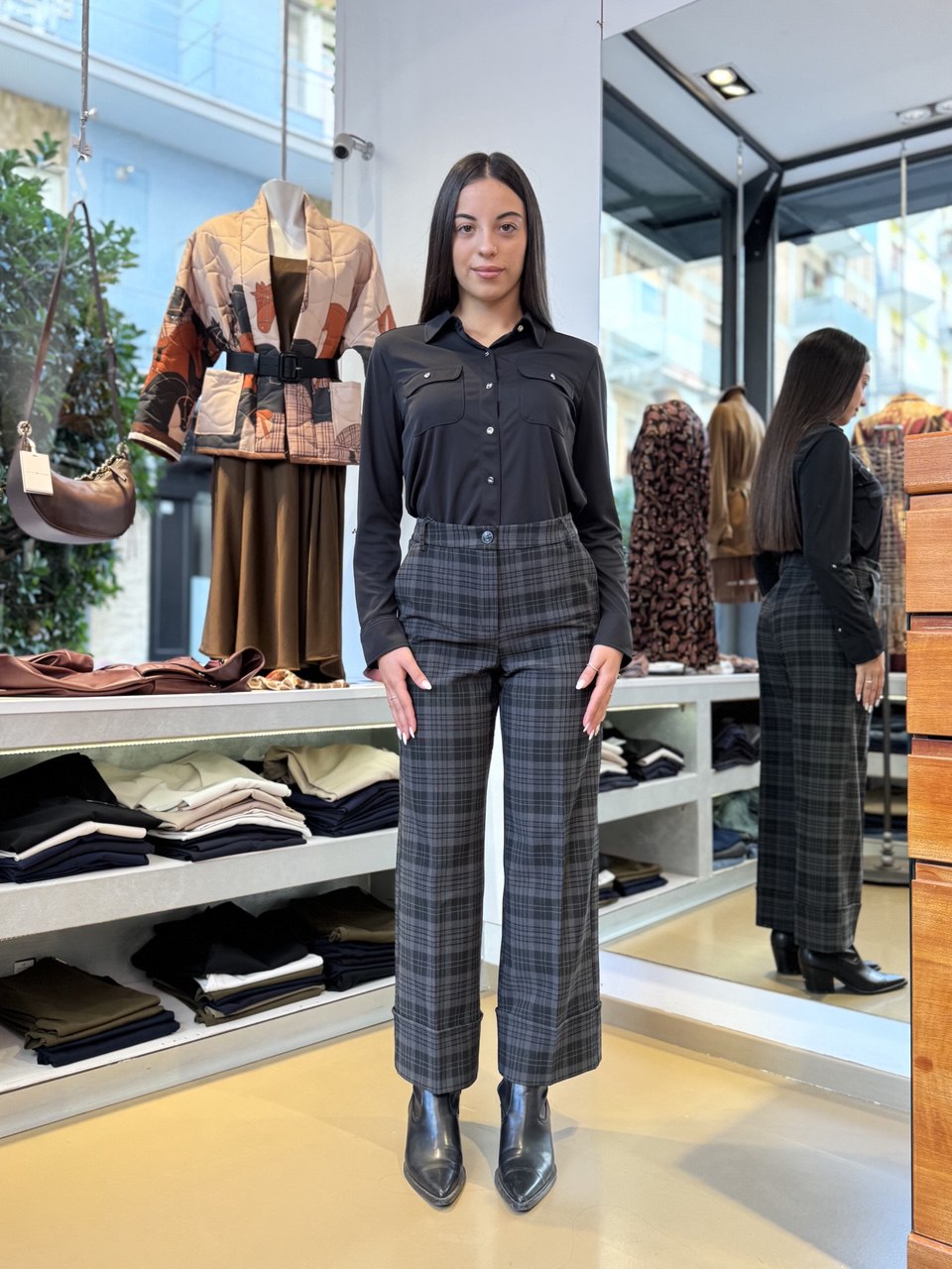 Lasciati conquistare dallo stile senza tempo di questo pantalone a quadri , con la sua silhouette a gamba larga con risvolto offre un comfort eccezionale e una linea sofisticata che slancia la figura. Perfetto per ogni occasione, puoi indossarlo con stivaletti o décolleté per un tocco elegante. Composizione : 72% poliestere, 21% viscosa, 7% elastan
