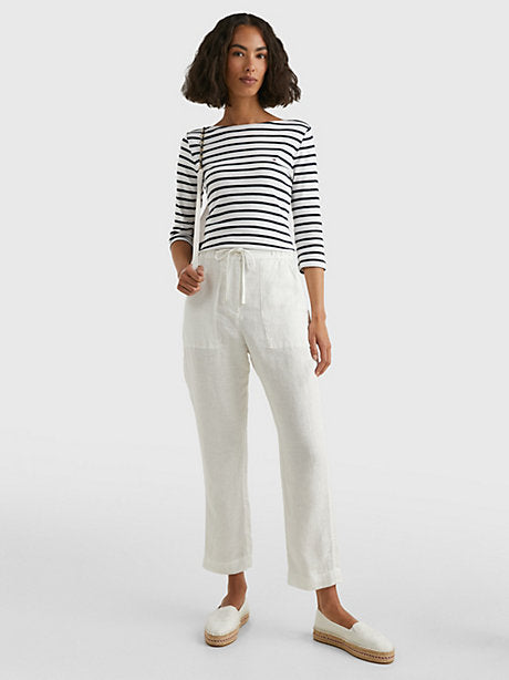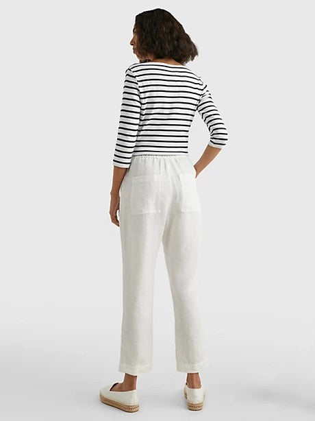 Scopri i nostri pantaloni in lino bianchi, ideali per un look estivo elegante e comodo. Con la coulisse in vita e la vestibilità morbida, godrai di un comfort senza limiti. Il colore bianco aggiunge un tocco di stile mentre il tessuto in 100% lino assicura un capo leggero e fresco. Facili da lavare, saranno il tuo alleato per uno stile impeccabile ogni giorno.