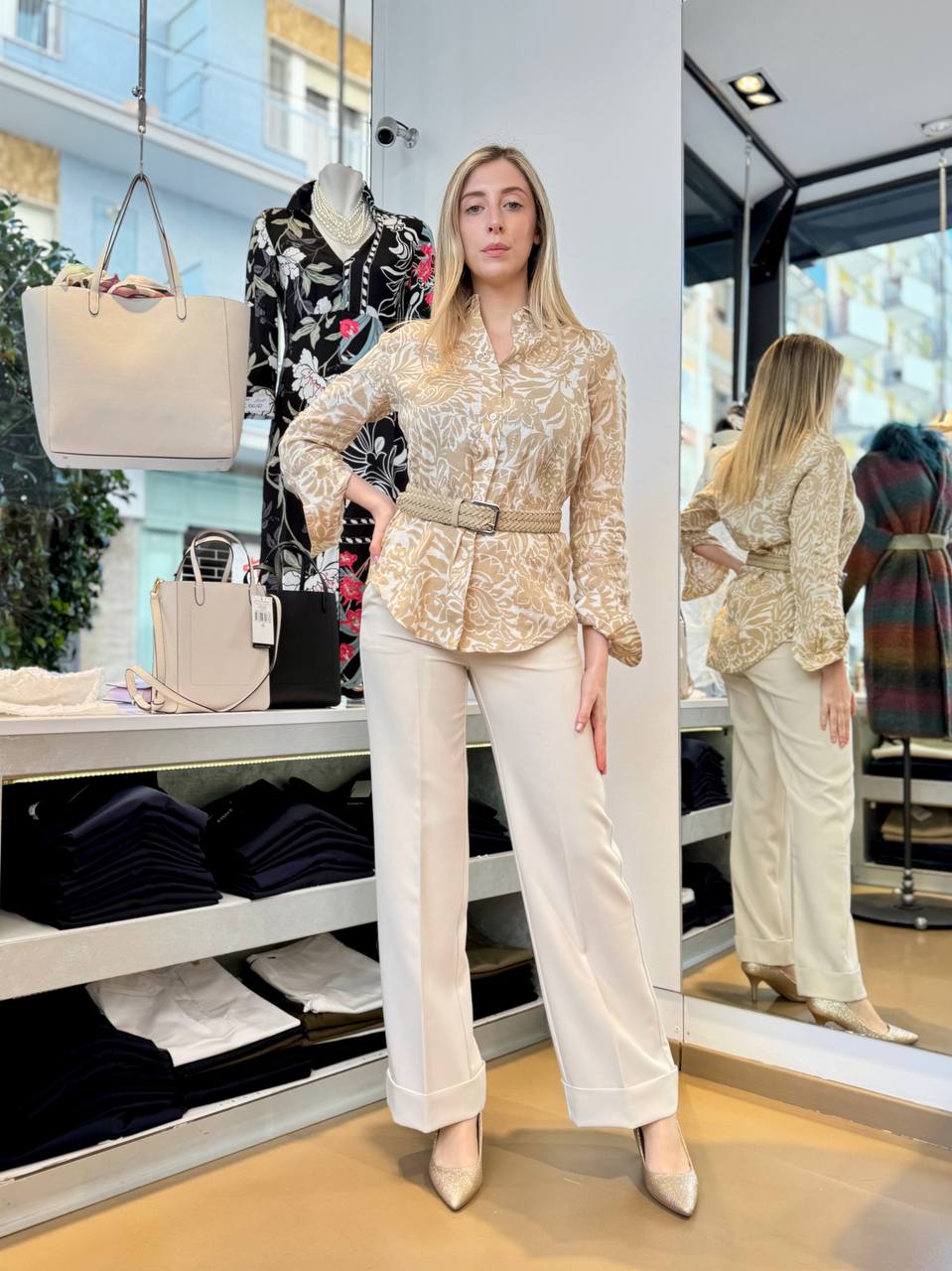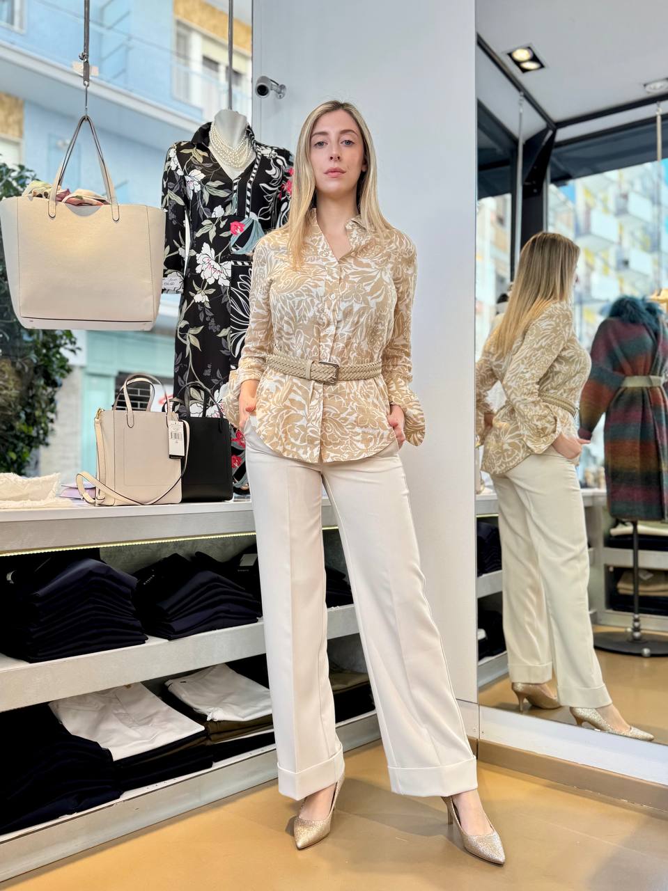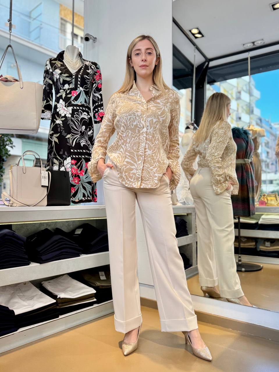 Esalta la tua eleganza con il nostro pantalone panna in tessuto tecnico con risvolto emmemarella. Il tessuto tecnico ti assicura comfort e praticità, mentre il risvolto dona un tocco di stile unico e sofisticato. Perfetto per un look di classe e raffinato, l'uso di materiali pregiati è garanzia di un prodotto esclusivo. Composizione: 51% cotone, 48% poliammide, 1% elastan.