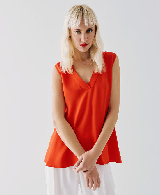 Passione e Stile: Blusa Smanicata in Rosso Arancio