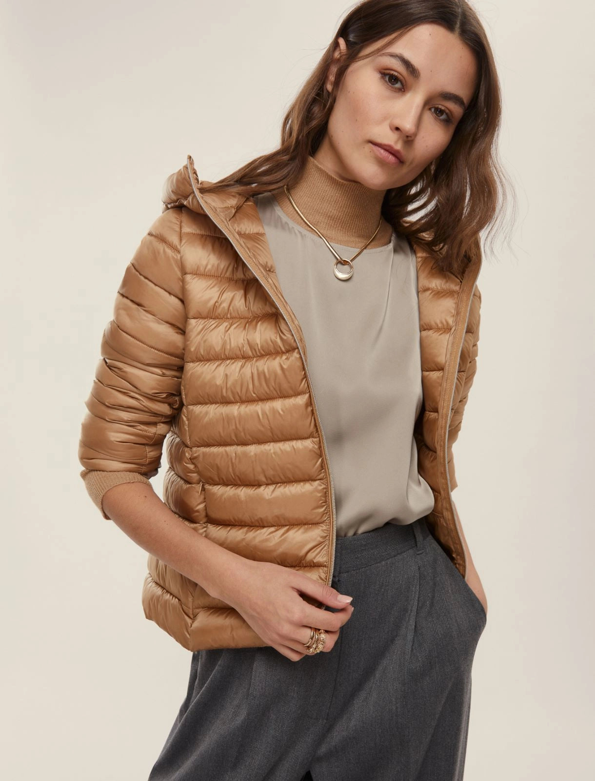 Leggero come una piuma e pronto a sorprenderti, questo piumino antigoccia si infila facilmente per proteggerti da piogge improvvise e temperature inaspettate. Il fit dritto e la trapuntatura orizzontale gli conferiscono un look chic e versatile, mentre il collo rialzato con cappuccio non staccabile assicura extra comfort. Scegli tra azzurro o cammello e abbinalo a qualsiasi outfit: questo piumino è il compagno perfetto per ogni avventura metereologica! Tessuto 100% poliammide; fodera 100% poliammide; con imbottitura in 100% poliestere. Lavabile in acqua o a secco.