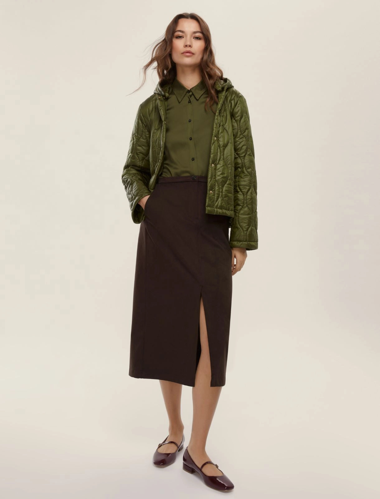 Piumino 100 grammi con cappuccio verde militare o marrone
