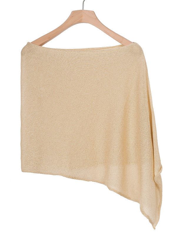 Poncho dorato che fonde leggerezza e raffinatezza, realizzato in pregiato cotone italiano con eleganti inserti di fili lurex dorati. Il taglio asimmetrico scorre armoniosamente sulla figura, illuminando con sofisticata delicatezza ogni look estivo. La sua versatilità lo rende un accessorio distintivo per elevare outfit casual-chic con un'eleganza innata. ONE SIZE. Composizione: 90% Cotone, 5% Poliestere, 5% Poliammide. Made in Italy. Lavaggio a secco consigliato.