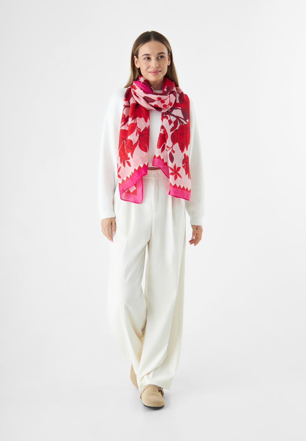La sciarpa in viscosa con stampa floreale rossa unisce eleganza e comfort in un accessorio sofisticato. Realizzata al 100% in viscosa di alta qualità, presenta una texture ultrasoft. Le dimensioni di 90 x 180 cm la rendono versatile per essere indossata tutto l'anno, sia all'interno che all'esterno. Il motivo floreale all-over aggiunge un tocco di raffinatezza, mentre il tessuto ipoallergenico garantisce una sensazione di benessere sulla pelle, combinando stile e funzionalità eco-sostenibile.