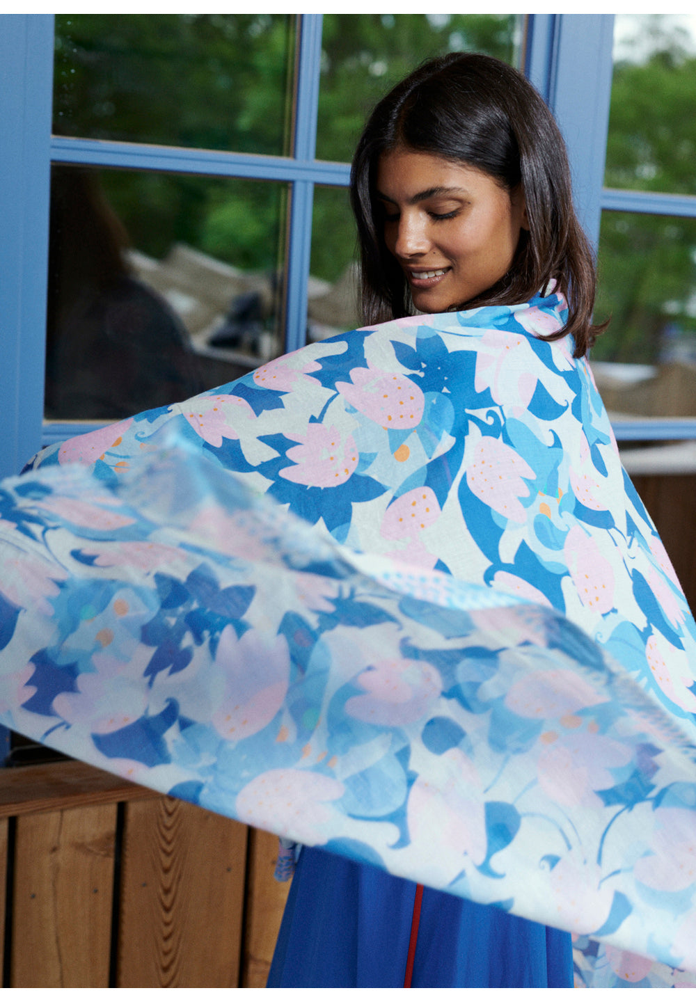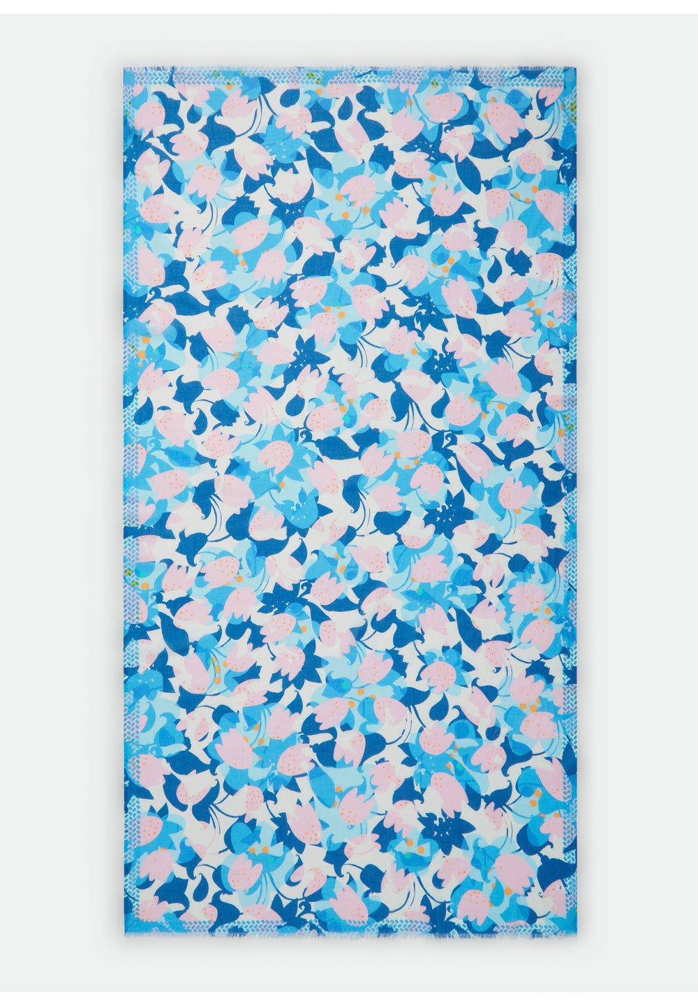 Sciarpa leggera con mix di motivi colorati in cotone biologico in blu