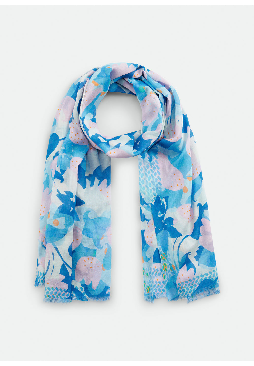 Aggiungi colore e stile al tuo outfit con il foulard grande in cotone biologico. I motivi misti dai colori vivaci sono perfetti per attirare l'attenzione, mentre la leggerezza del tessuto lo rende ideale per ogni stagione. Il cotone biologico, coltivato in modo sostenibile, è certificato GOTS per un'esperienza di lusso etico e responsabile. Composizione 100% cotone. Lavabile in acqua.