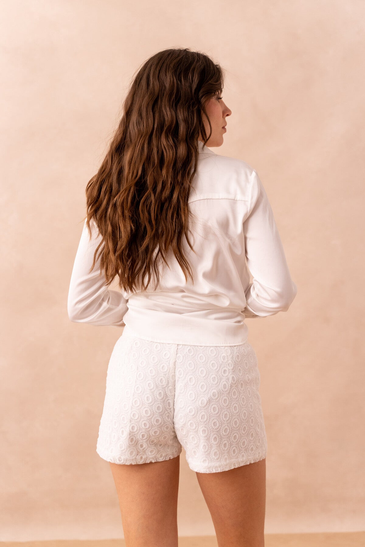 I pantaloncini perfetti per l'estate: realizzati in pizzo, con un'elegante chiusura zippata e un comodo rivestimento interno. Aggiungi un tocco di classe al tuo outfit estivo con questi shorts di alta qualità. Perfetti per un look fresco e raffinato in ogni occasione.