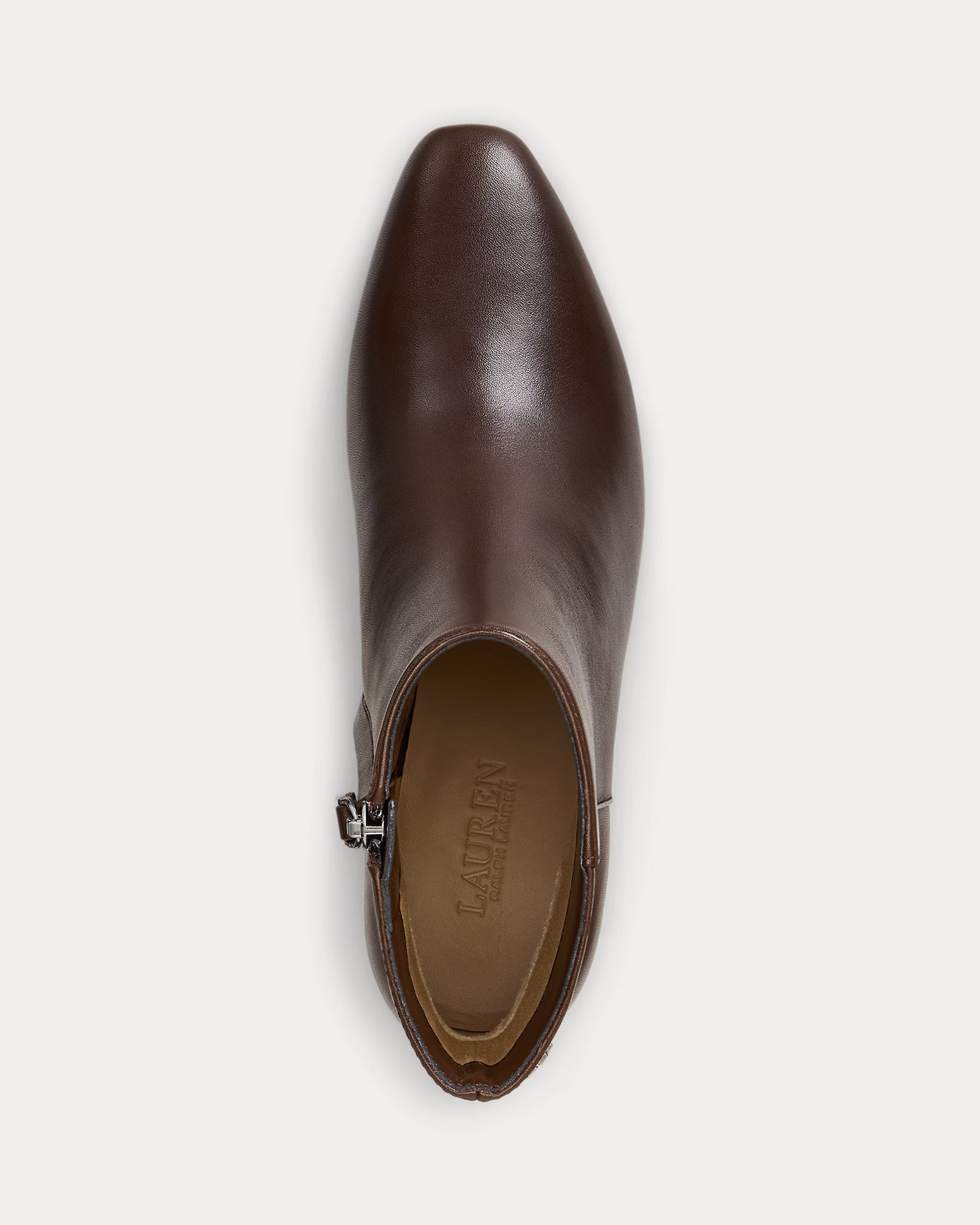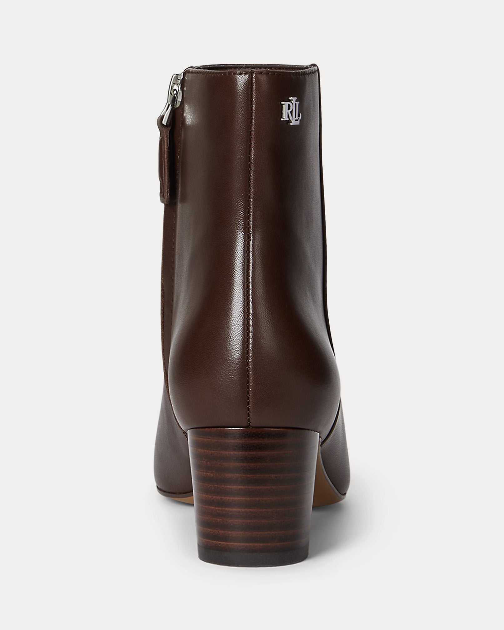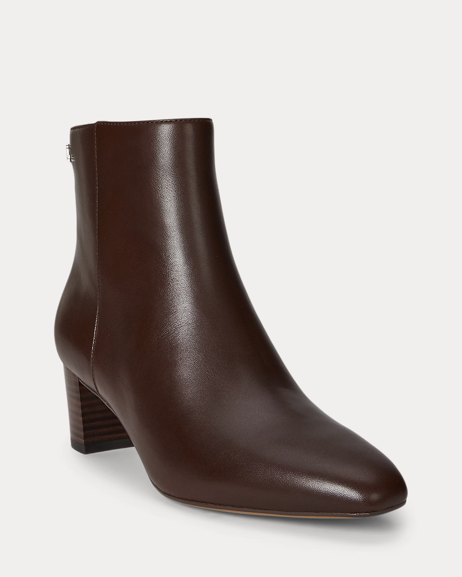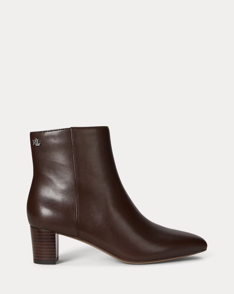 Stivaletti eleganti e sofisticati per l'inverno, realizzati in pregiata pelle di vitello morbida e lussuosa. La silhouette slanciata è caratterizzata da una punta quadrata confortevole e un tacco squadrato di 50 mm rivestito in pelle striata, che conferisce un tocco di raffinatezza. Il logo "LRL" in metallo lucido sul lato esterno aggiunge un dettaglio esclusivo Lauren Ralph Lauren. La chiusura laterale con cerniera garantisce praticità, mentre la soletta imbottita assicura comfort durante tutto il giorno. Gambale di 12,5 cm con apertura di 26,5 cm. Suola in gomma resistente. Perfetti per completare look sofisticati nelle fredde giornate invernali.
