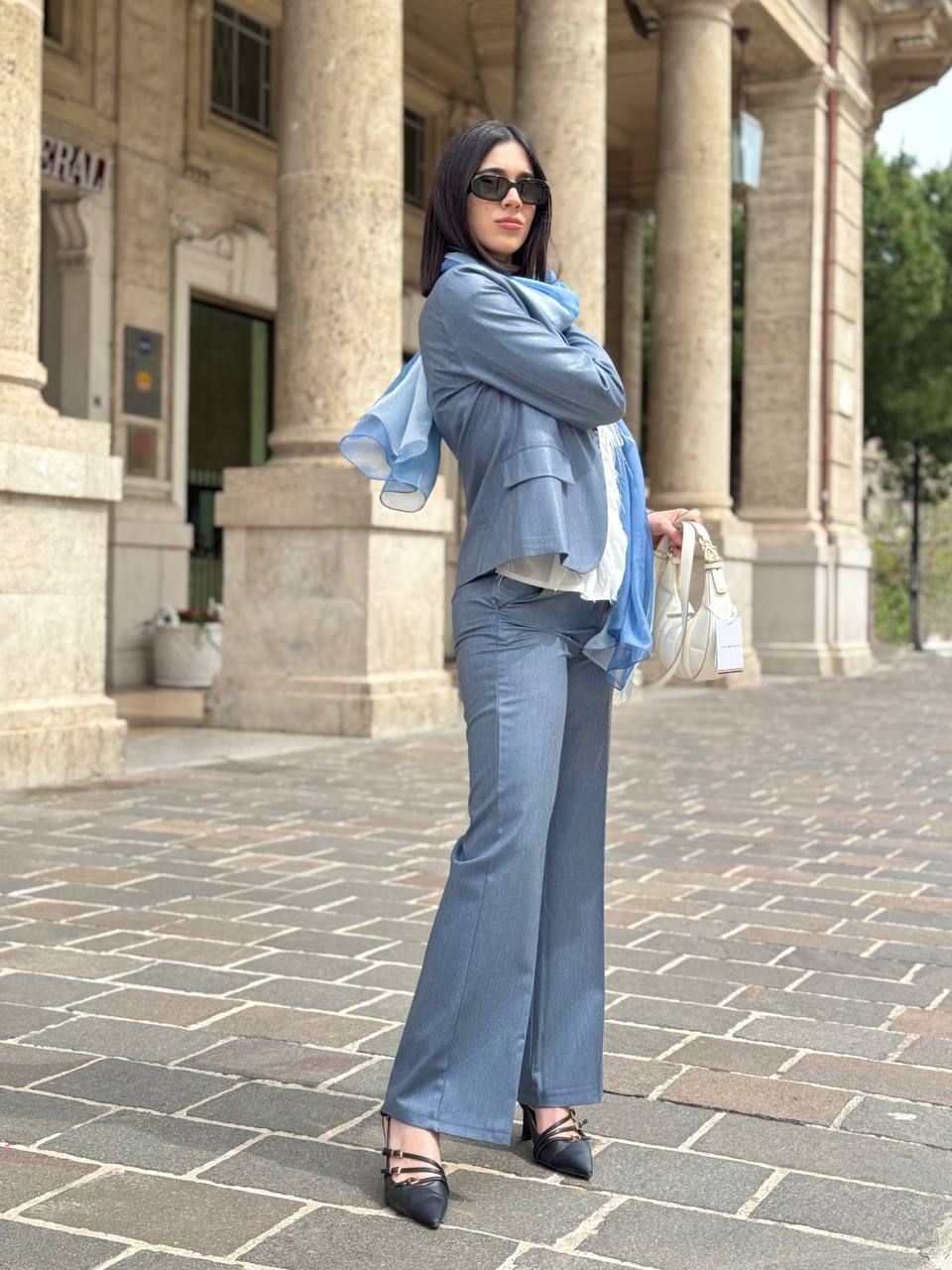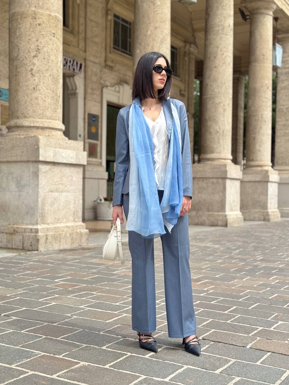 Impalpabile e delicata, questa ampia stola in chiffon di seta avvolge il corpo con la sua leggerezza eterea. La trasparenza del tessuto, quasi impalpabile al tatto, crea un effetto fluttuante e sinuoso, mentre la sfumatura esalta la sua eleganza sofisticata. Perfetta per aggiungere un tocco raffinato e leggero a qualsiasi look, è l'accessorio ideale per chi ama la grazia e la femminilità senza tempo. Dimensione cm 110x200.