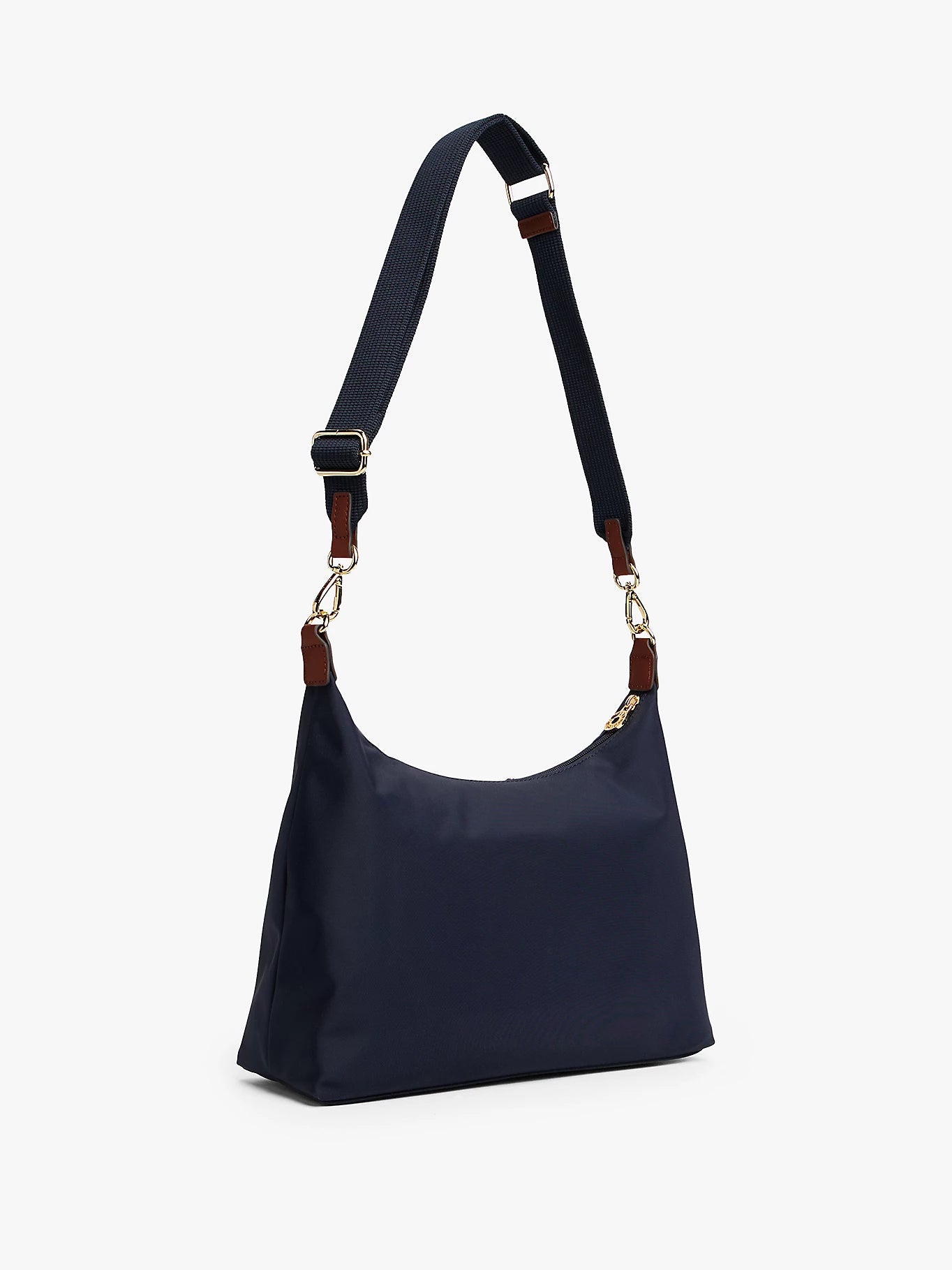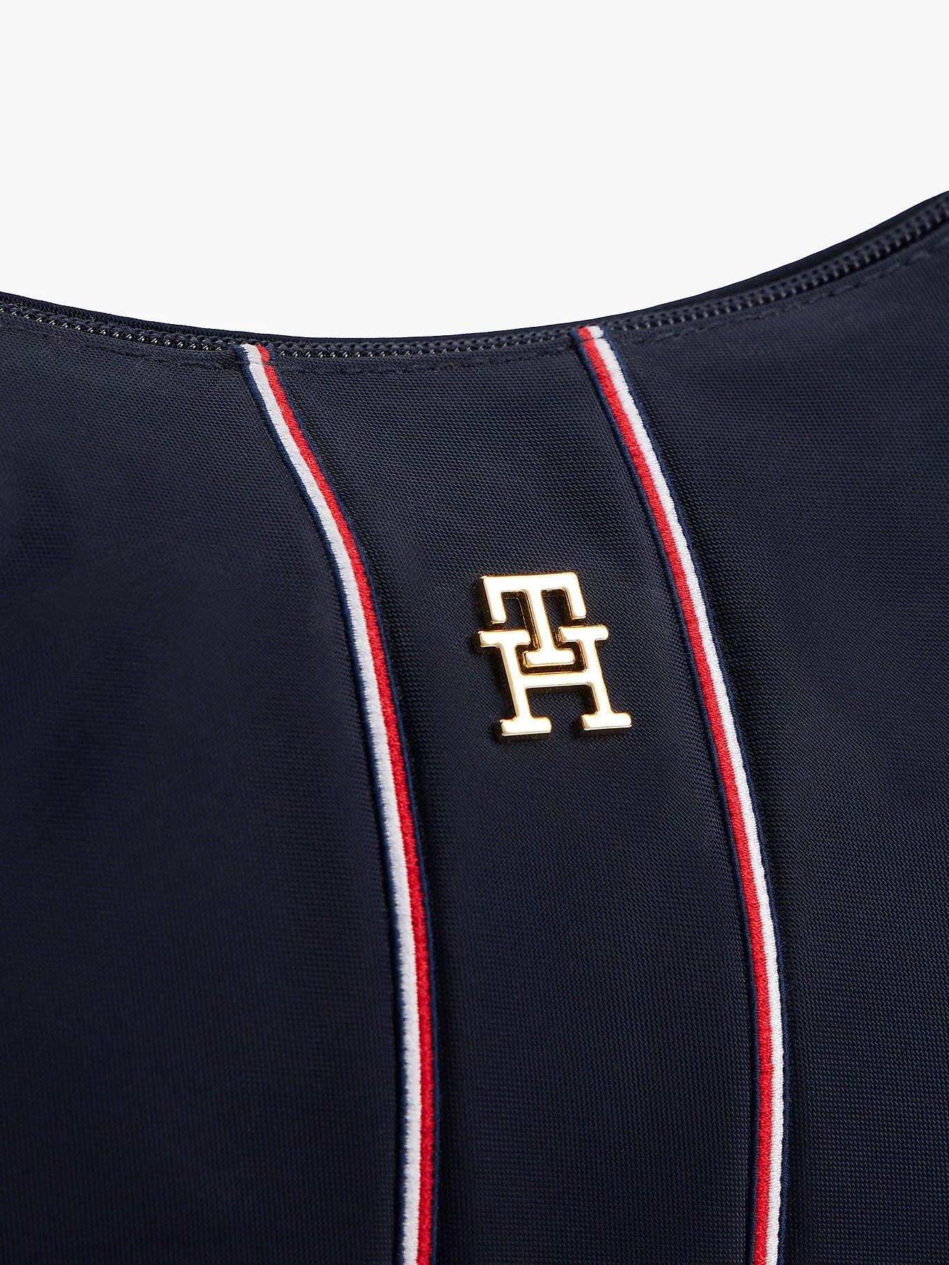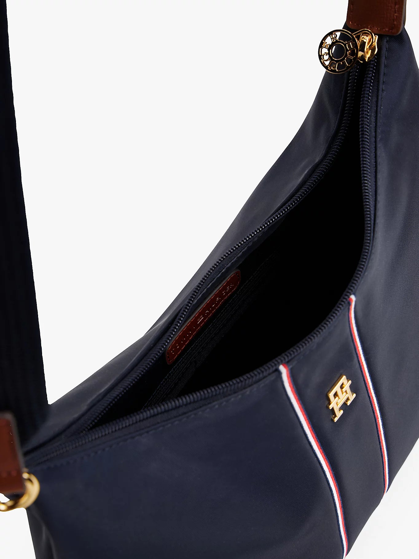 La tracolla blu in nylon combina funzionalità e stile raffinato, grazie alla finitura liscia e alla chiusura con zip che garantisce sicurezza. La tracolla regolabile e rimovibile offre versatilità d’uso, mentre lo scomparto principale e la tasca interna con zip assicurano organizzazione ottimale. Il nastro iconico e la placchetta con monogramma TH aggiungono un tocco distintivo di eleganza classica, rendendo questa borsa un accessorio ideale per completare ogni outfit con il prestigioso branding Tommy Hilfiger. Dimensioni compatte di 34 x 11 x 29 cm per praticità quotidiana.