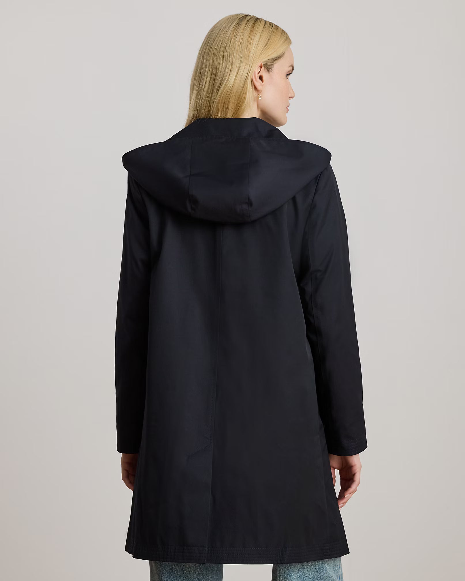 Questo trench monopetto rappresenta un'interpretazione contemporanea del classico balmacaan, realizzato in pregiato misto cotone con trattamento idrorepellente. La silhouette strutturata richiama l'eleganza dell'abbigliamento maschile, mentre il cappuccio staccabile garantisce massima versatilità d'uso. I bottoni in corno con incisione "Lauren Ralph Lauren" costituiscono una firma distintiva che eleva il capo con dettagli sartoriali raffinati. Un investimento senza tempo per il guardaroba autunnale e invernale.